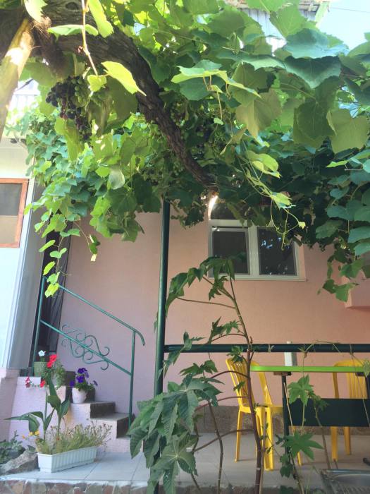 Отличный дом для семейного отдыха, две комнаты и просторная кухня. Имеется все необходимое, стиральная машинка, пылесос, различная посуда, как для дома, так и для отдыха на улице. Беседка очень удобная, отличная мебель, расположение, увита виноградником, что отлично спасает от жары. То же можно сказать в целом и о дворе,. Комнаты просторные, мебель в отличном состоянии, диваны удобные. Спасибо за прием.