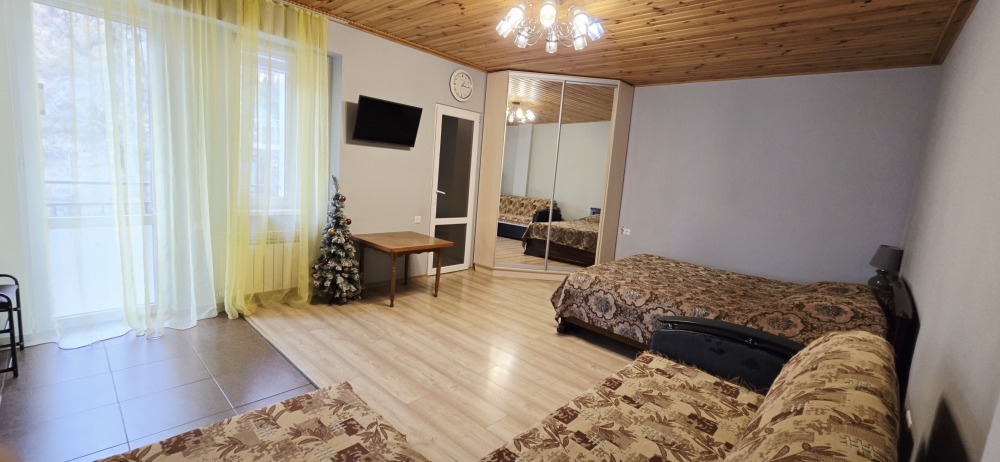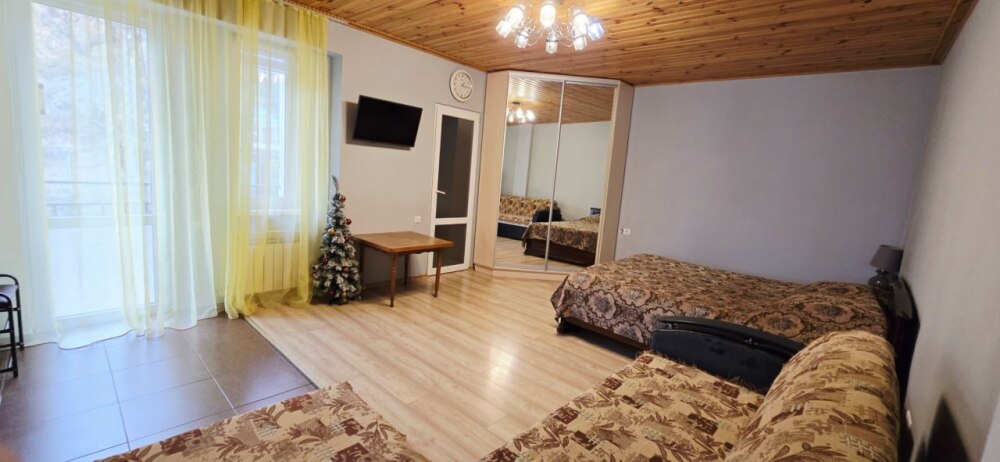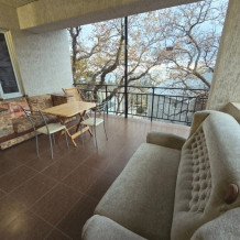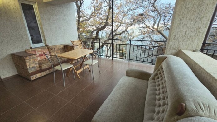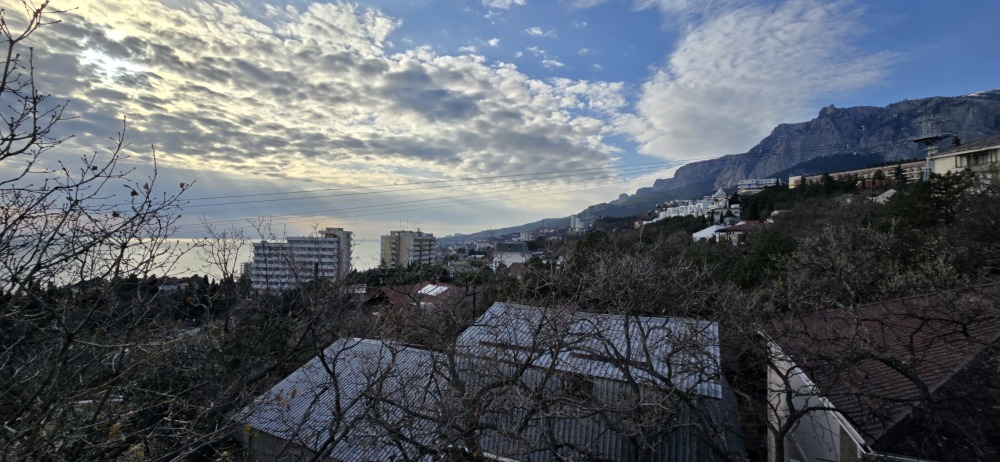 В частном тихом секторе сдаётся для большой семьи или компании два номера с террасой и балконом на 3 этаже и общей кухней на эти два номера с видом на Ай-Петри и море.