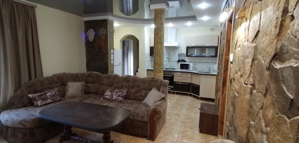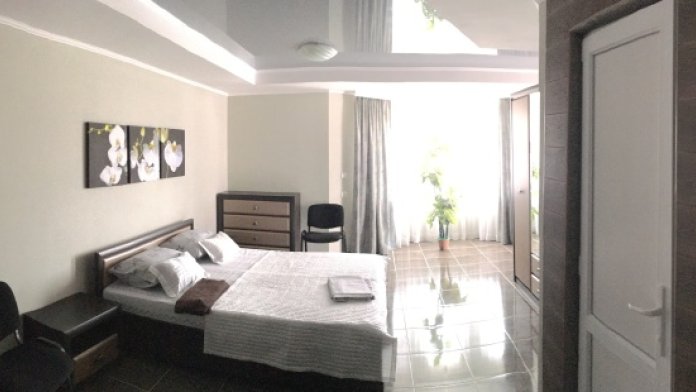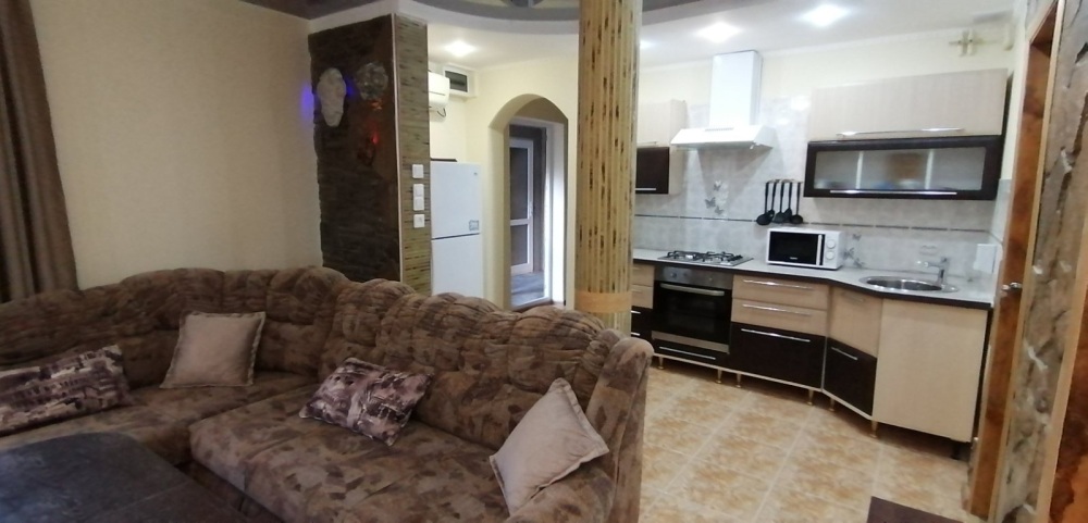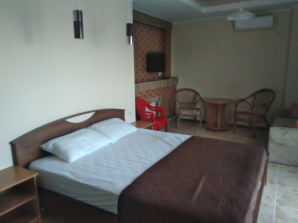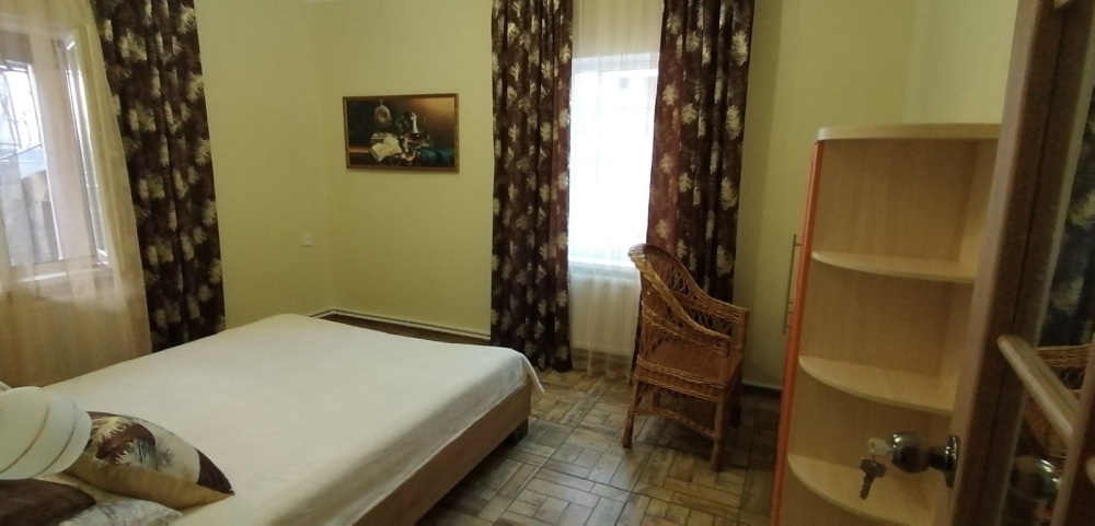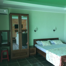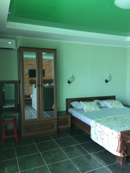 Отдельно стоящий домик , удобный для семьи с детьми , просторный с кухней , рядом с домиком беседка , мангал. Все удобства в номере . Комнаты раздельные , не проходные. В домике 2 спальни и кухня- студия с раскладным диваном . Минимальный срок проживания в гостевом домике -5-6сут