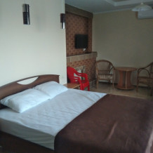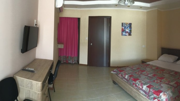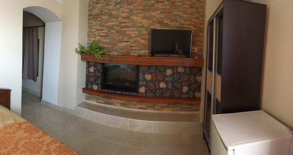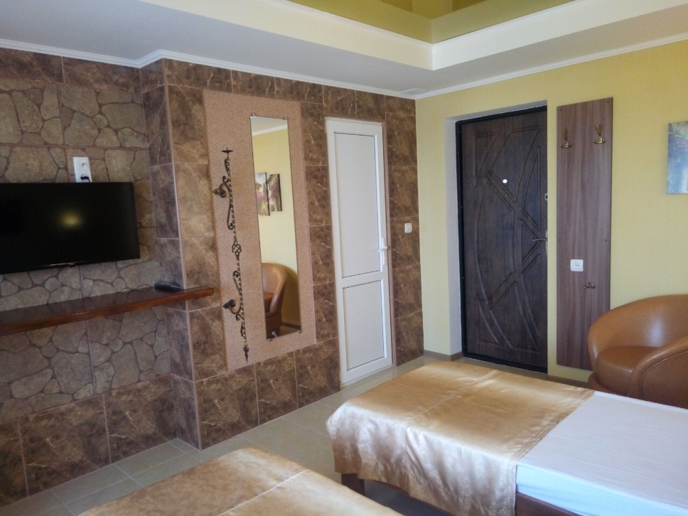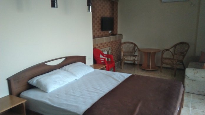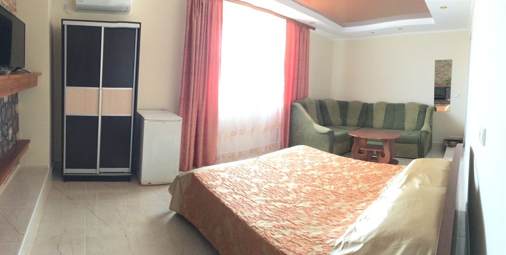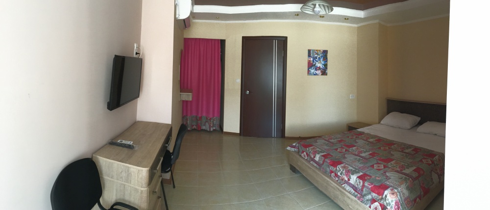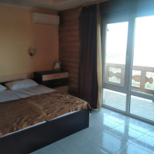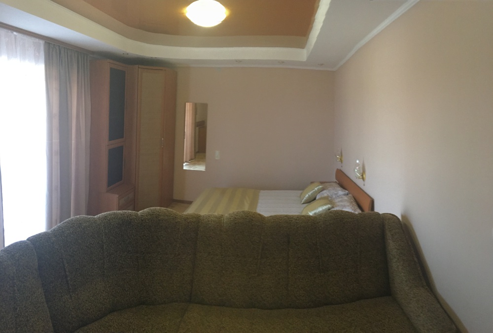 Номер расположен на втором этаже, В номерах есть балкон, с которого открывается вид на море. Помимо двуспальной кровати есть раскладной диван.Номер рассчитан на 2-3 чел