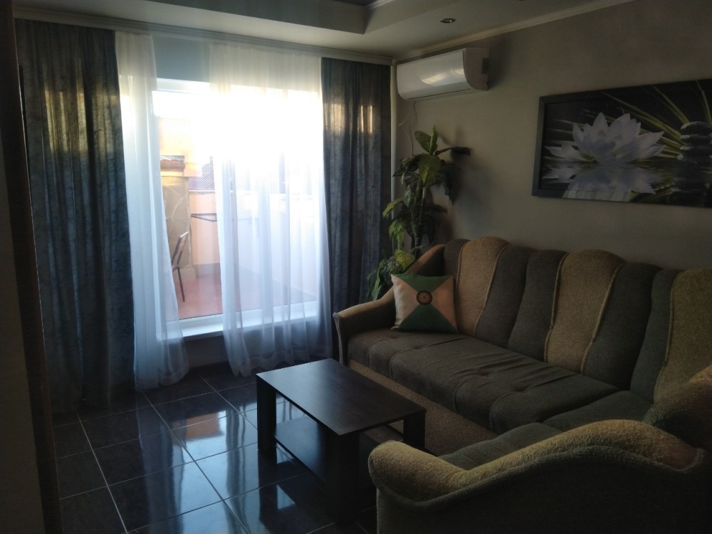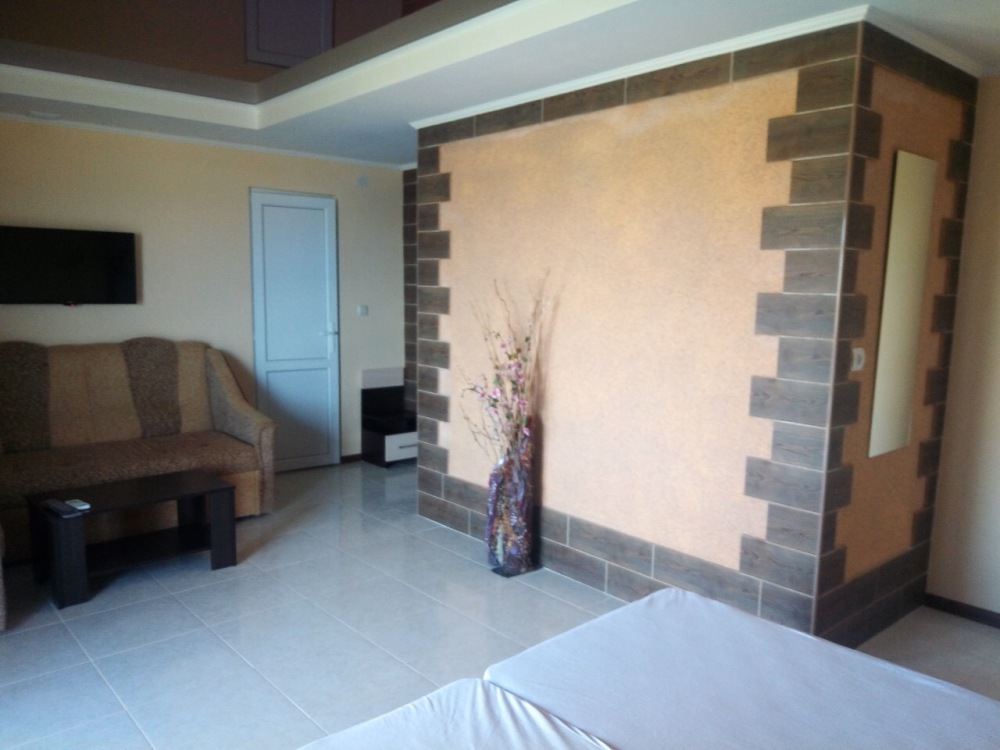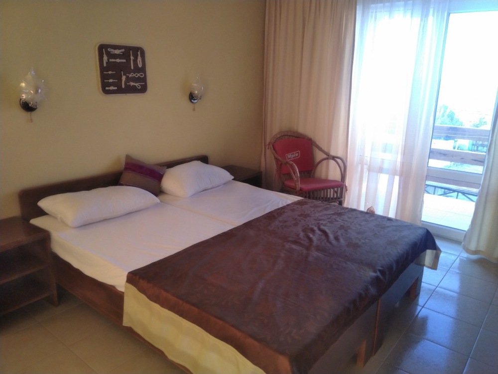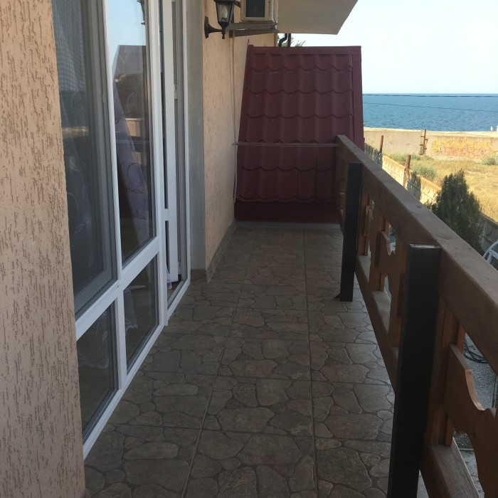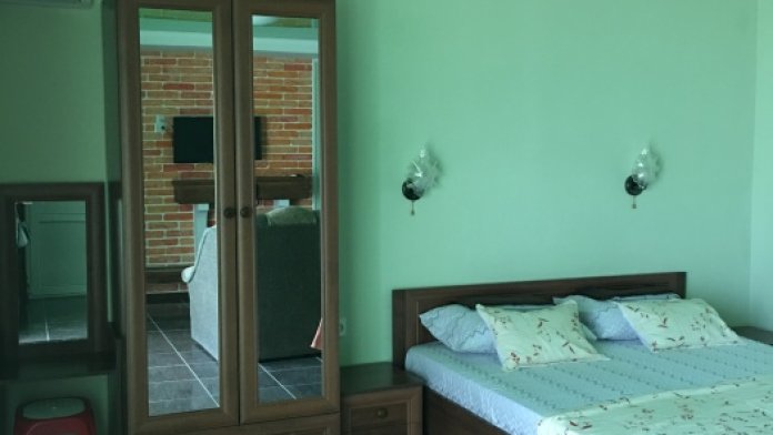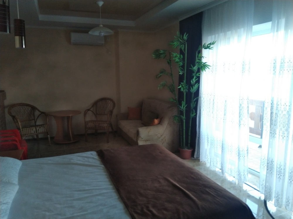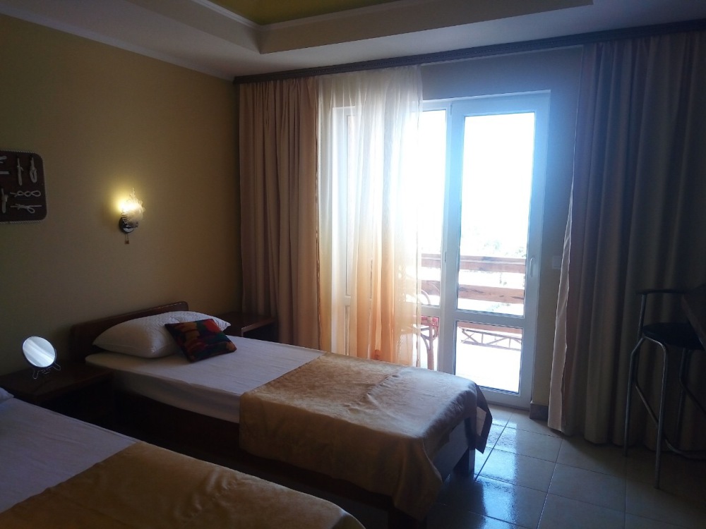 Номер расположен на втором этаже, В номере есть балкон, с которого открывается вид на море. Помимо двуспальной кровати есть раскладной диван.Номер рассчитан на 2-3 чел .
