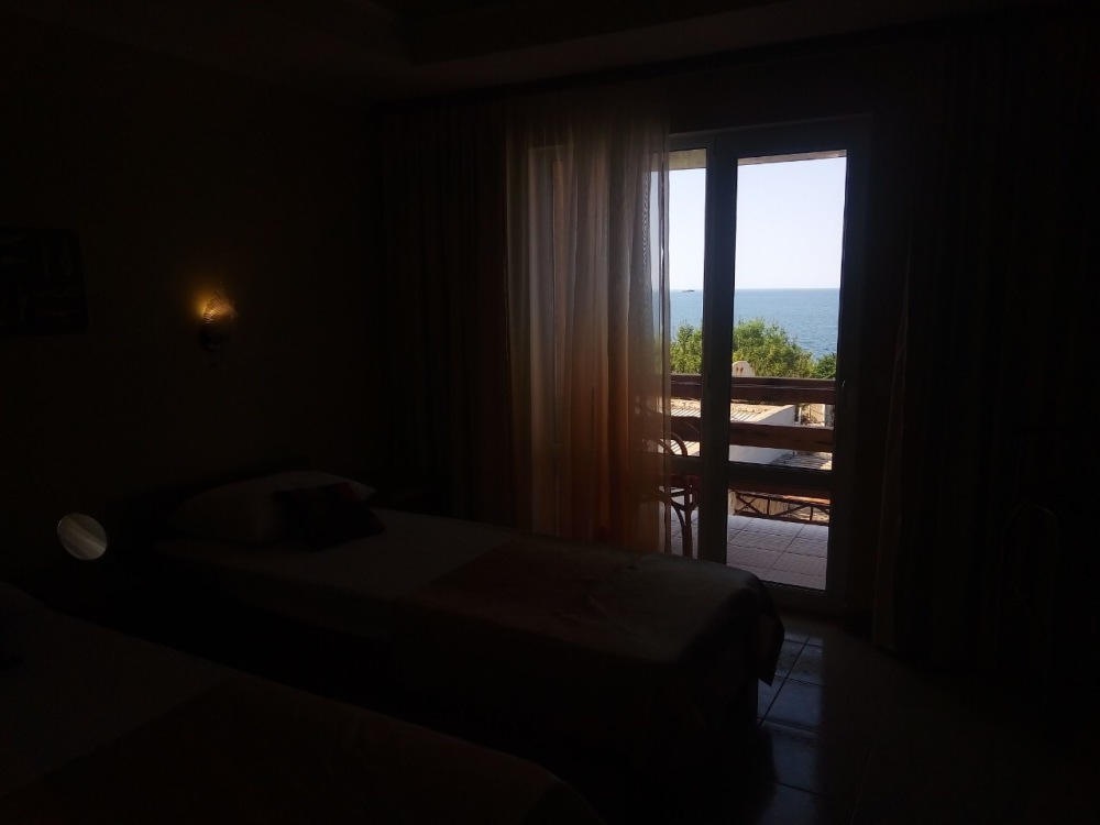 В №7 две односпальные кровати, которые можно сдвинуть вместе, в ней есть небольшой балкон с видом на море