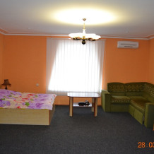 В номере мебель: Двуспальная кровать, Двуспальный диван, шкаф, кресло, стол, стулья.