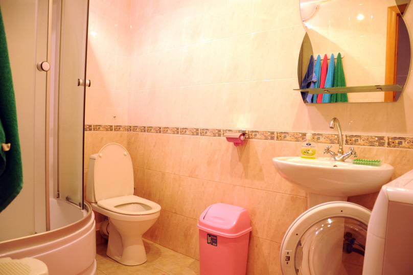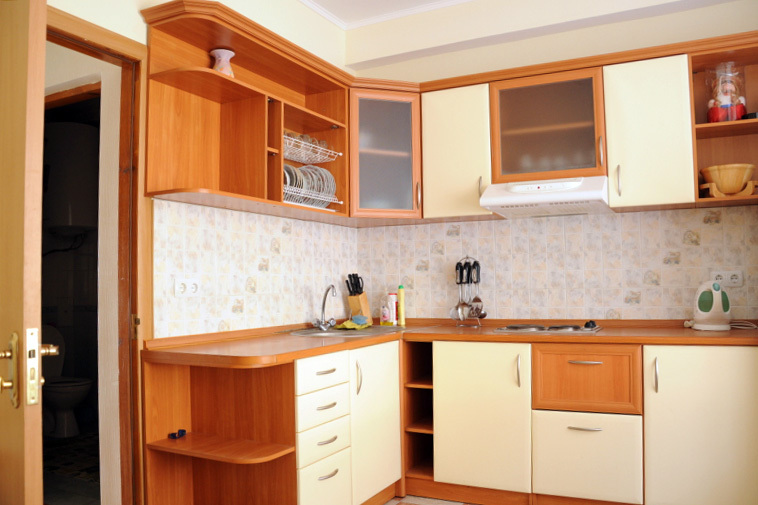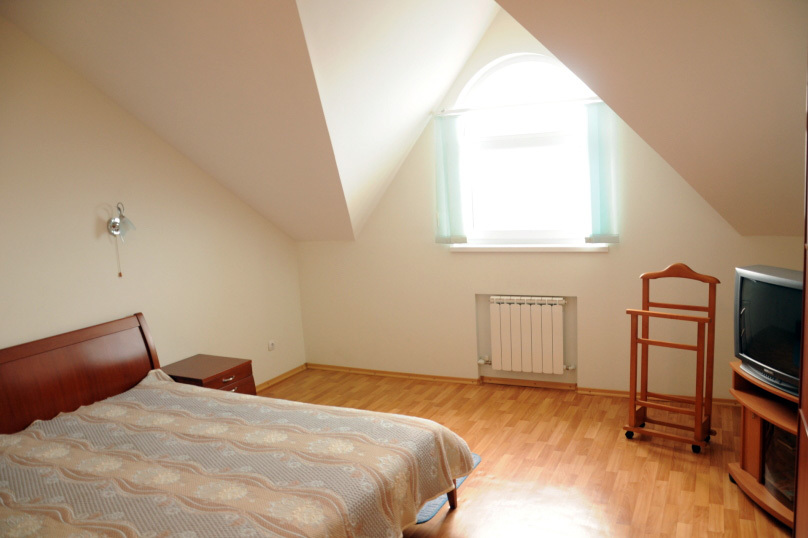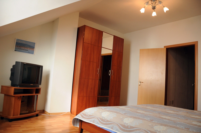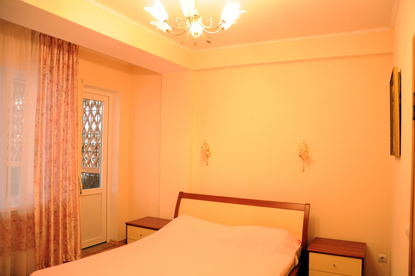 Номера имеют полностью оборудованную кухню (16 кв.м.), где есть все необходимое для готовки, две спальни (18 кв.м. и 6 кв.м.), две двухспальные кровати, две односпальные кровати, диван, балкон с видом на море, TV, wi-fi, кондиционер, 2 санузла, со стороны гор оборудованная площадка для отдыха.