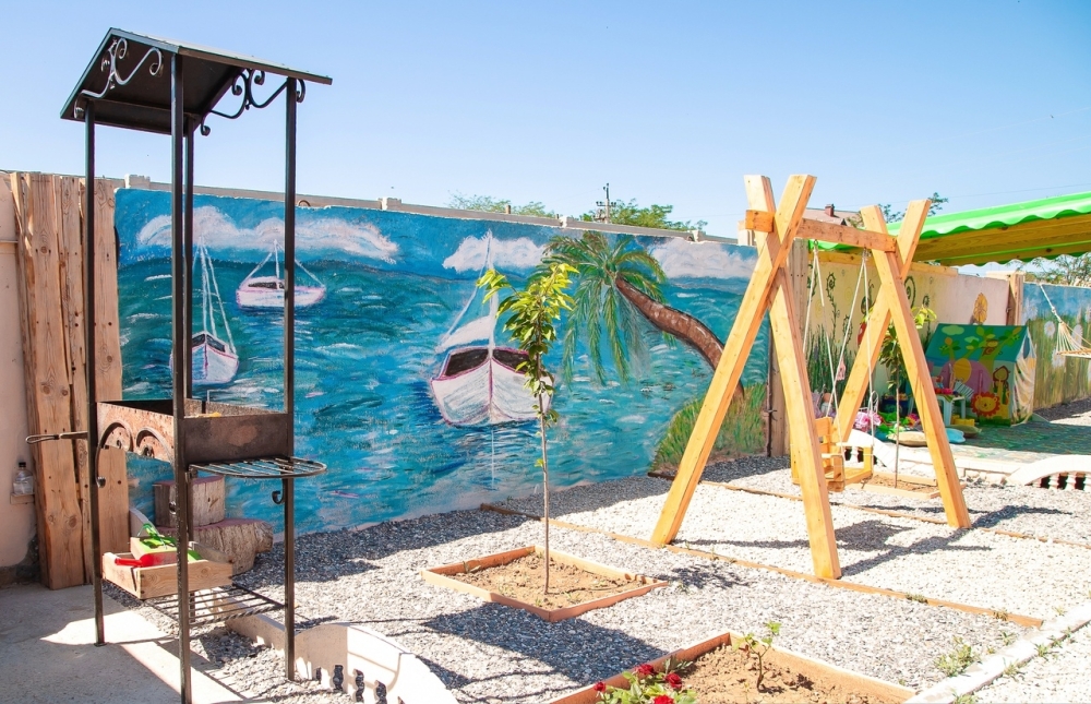 .Двор уютный,тенистый, возле беседки розарий и гутой виноградник,поэтому во время отдыха вам будет комфортно и не жарко.