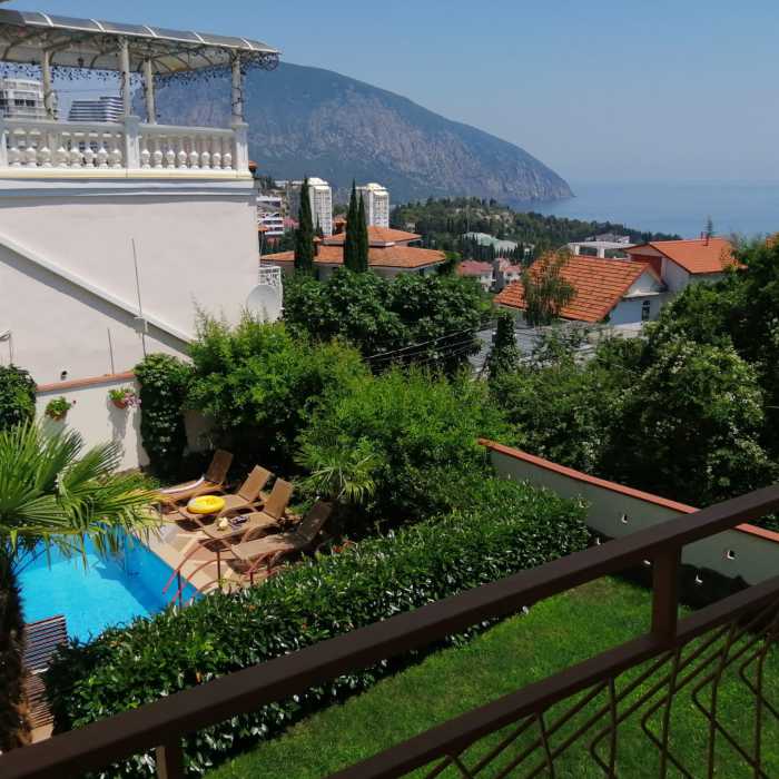 Гостевой дом «Илона» расположен в тихом месте в пятнадцати минутах ходьбы от моря. Утопающая в зелени закрытая территория идеально подходит для семейного отдыха. На территории для Вас расположен открытий бассейн, с прилегающей площадкой для отдыха в тени крымского граната, лужайка для детских игр. Две террасы, одна из которых расположена на втором этаже и располагает к более спокойному отдыху. Террасы оборудованы холодильниками, микроволновыми печками, мультиварками, чайниками, посудой, а также телевизорами, для любителей посмотреть телевизионные передачи на свежем воздухе.