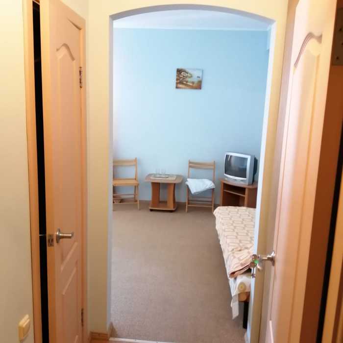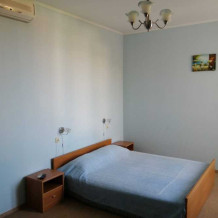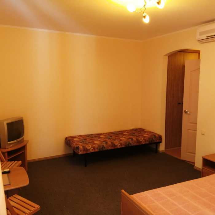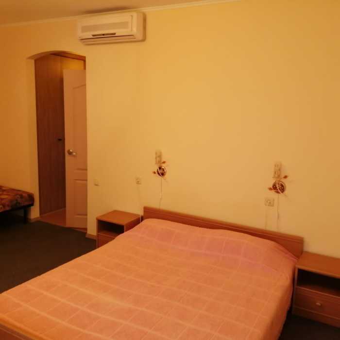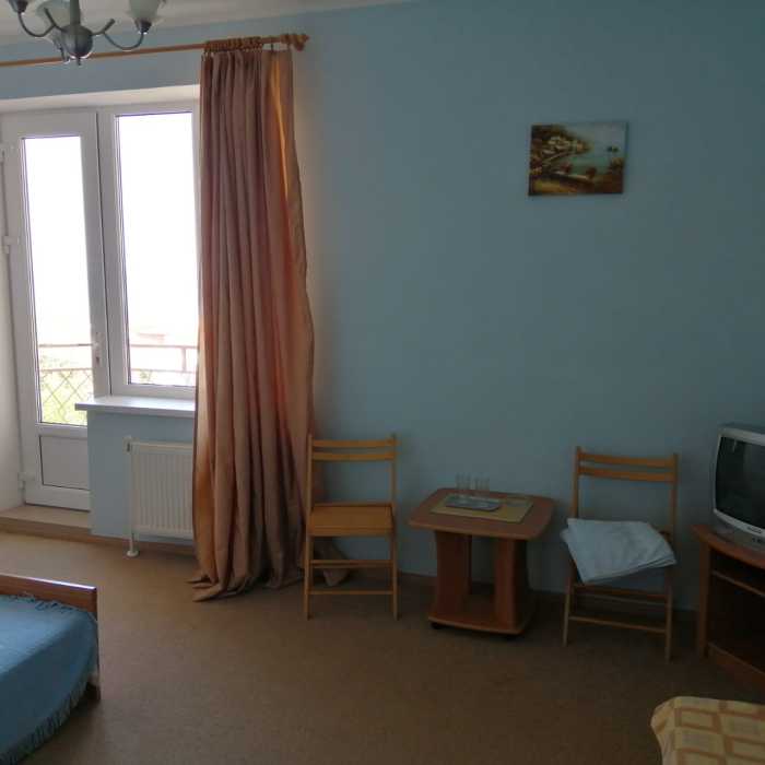 Для размещения наших гостей мы предлагаем просторные и комфортабельные номера. Однокомнатные номера рассчитаны на двух человек, двухкомнатные на трёх человек. Окна всех номеров выходят на южную сторону. В каждом номере имеется телевизор, кондиционер, санузел с душевой кабиной, балкон.