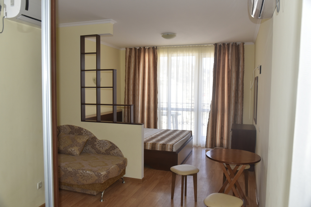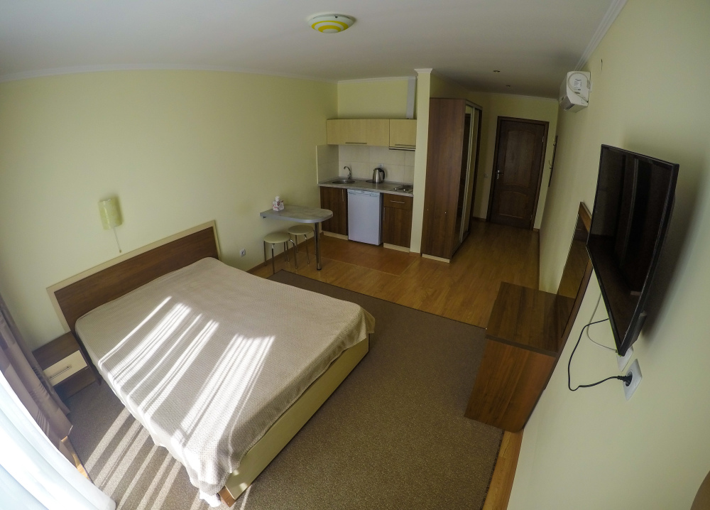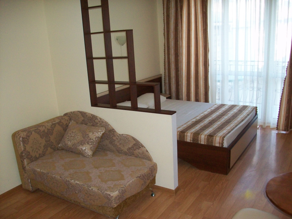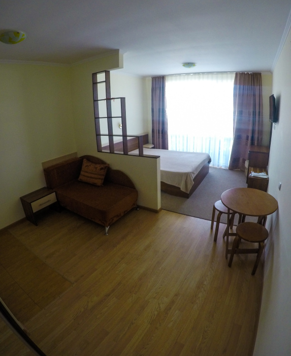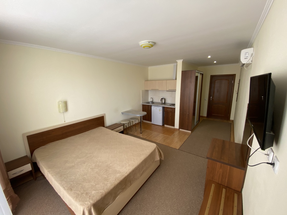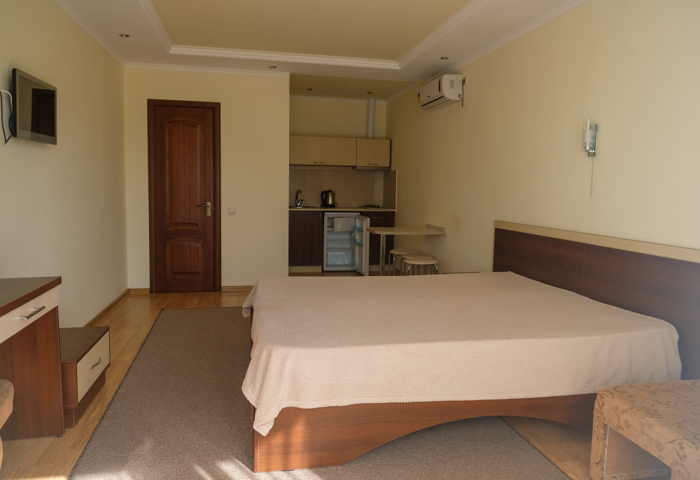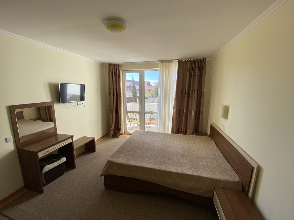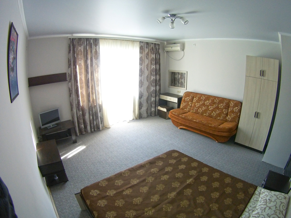 - один двухместный номер с балконом, площадь – 25 м.кв., расположен на втором этаже, Спальные места – кровать двуспальная (1,6 х 2,0 м.).