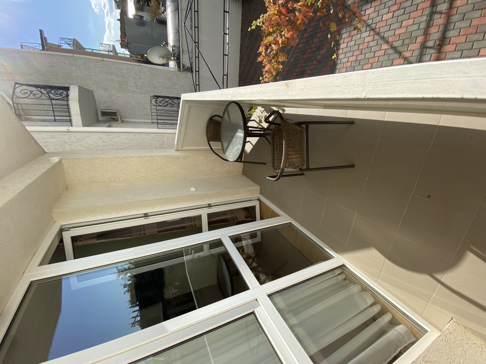 Балкон оборудован: стол и два кресла для отдыха.