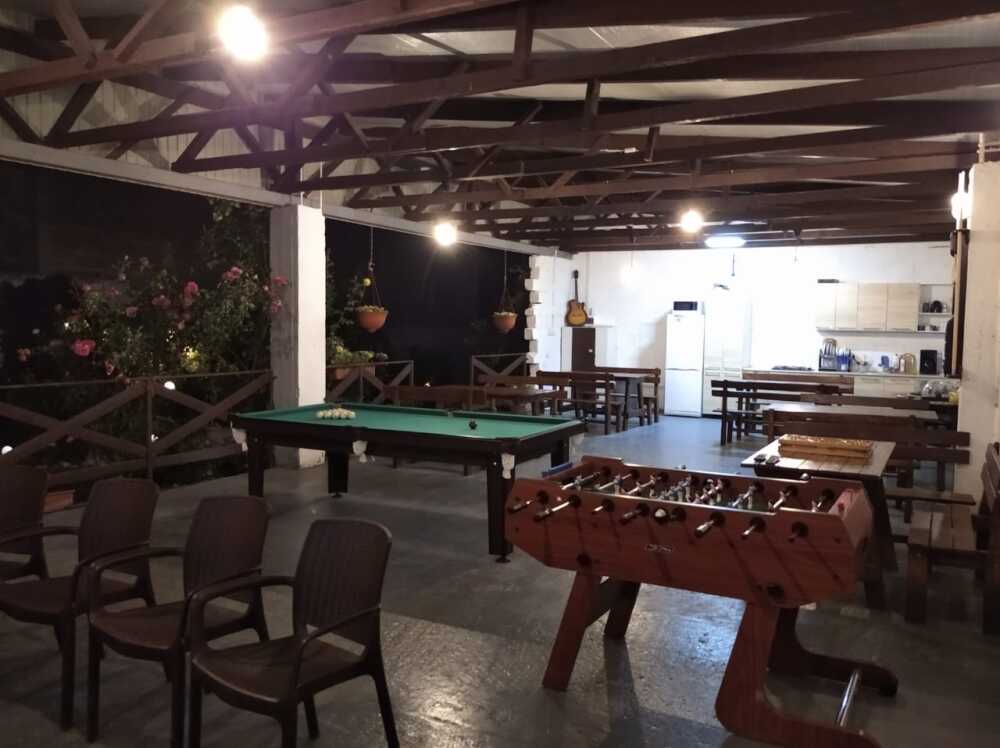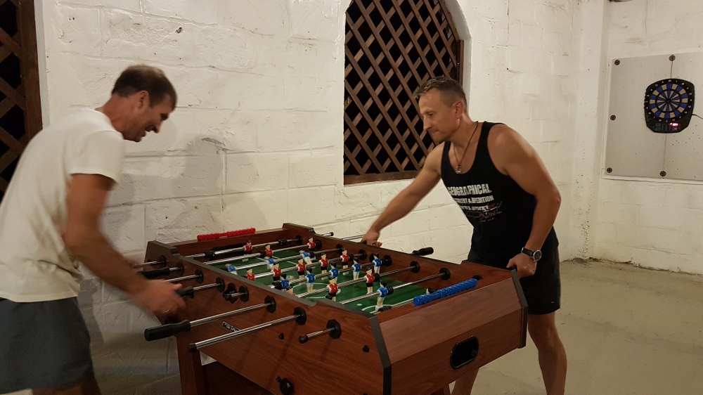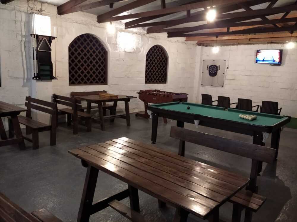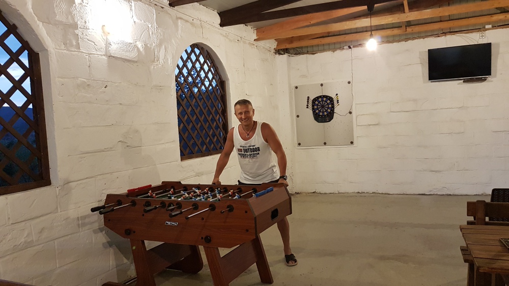 - Там же в течении всего дня к Вашим услугам бильярд, настольный футбол (кикер), дарт, нарды другие настольные игры, а так же уютный вечер за игрой в покер*. Любые игры на деньги на территории «Гостевого Дома Шайдт» запрещены.