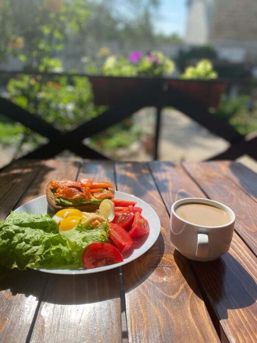Кроме этого имеется общая гостиная (лаундж) с телевизором, где утомлённых солнцем гостей, ждёт бодрящий кофе (бесплатно).