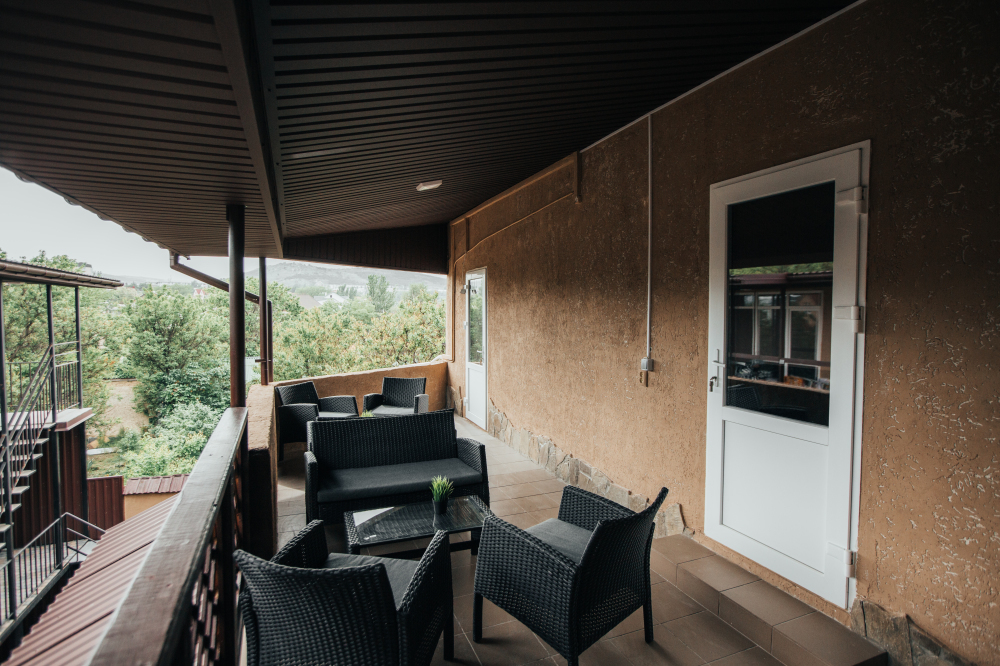 Балкон, Из окон открывается вид во двор, на горы и город.