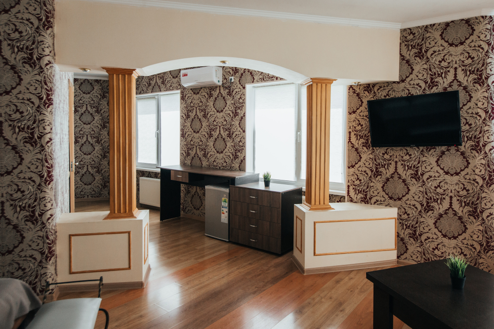 У нас имеется 23 комфортабельных номера, среди которых номера категории Полулюкс и Семейный Полулюкс. Каждый номер представлен в разном архитектурном стиле, что подчеркивает индивидуальность гостиницы. В каждом номере предусмотрено все необходимое для полноценного отдыха: индивидуальное кондиционирование, кабельное ТВ, выход в Интернет, отопление в межсезонье. В ванной комнате: совмещённый санузел с душевой кабинкой, имеется фен и набор ванных принадлежностей. Уборка номеров производится по запросу гостя. К услугам гостей встреча/проводы из аэропорта, бесплатный Wi-Fi, экскурсионное бюро, широкая терраса для отдыха, летний мини-бар, мангал, кухня, парковка. На территории имеется бассейн. В межсезонье он подогревается.