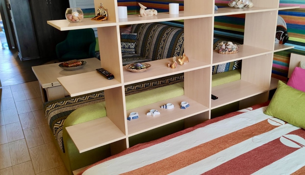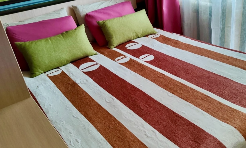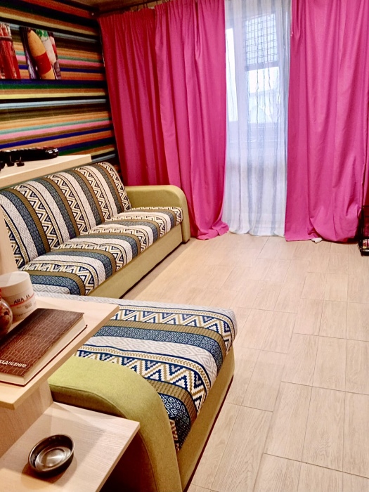 Внимание!!! В Коктебеле продолжается реконструкция набережной, центральная часть набережной закрыта. Открыты пляжи: Юнге, Белый Грифон, Карадаг, Тихая бухта. Сдаётся посуточно 1- комнатная квартира в пгт Коктебель 40 кв.м. рядом с морем (350 м), с кондиционером, Wi-Fi, TV спутниковое и TV через интернет, с отдельной кухней, совмещенным санузлом, балконом на 5/5 дома, с автономным отоплением и постоянным водоснабжением по адресу переулок Долинный, возле пансионата «Голубой залив». Расстояние до моря и набережной с аквапарком и дельфинарием 350 м по парку пансионата, ближайший магазин находится на 1 этаже дома, до рынка - 250 м, автостанция - 500 м. Квартира с видом на Карадаг и море. Комната: шкаф, горка для тв с тумбочками, телевизор, двуспальный большой диван (спальное место 3 м), двуспальная кровать, постельное белье, кондиционер, перегородка, стол-трансформер, 2 кресла. Кухня: рабочая зона кухни, обеденный раскладной стол, 4 стула, 1, 5 -местный раскладной диван (спальное место 1, 4 м), постельное белье, телевизор, посудомойка, микроволновка, эл. чайник, газовая плита, холодильник с морозильной камерой, мультиварка, двухконтурный газовый котел, посуда и кухонные принадлежности, бытовая химия. Санузел.: душевая кабина, туалетный столик с раковиной, унитаз, полотенца, рукав для сушки полотенец, стиральная машина, утюг с гладильной доской, туалетные и ванные принадлежности, бытовая химия, подвесной комод, водоснабжение постоянное (центральное и автономное). Балкон: кресло-кровать (спальное место 70 см), постельное белье, шкаф. Прихожая: 2 комода, туалетный столик, пылесос. Придомовая территория благоустроенная. Неохраняемая парковка. На придомовой территории есть детская игровая площадка и тренажерный комплекс на открытом воздухе. Разрешено размещение с детьми любого возраста, домашними животными (собаки мелких пород). Запрещено курение в квартире. Заезд после 14.00, выезд до 12.00. В квартире предусмотрено размещение не более 4 человек, включая детей, можно с животными по договоренности.