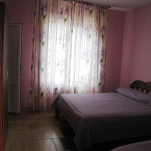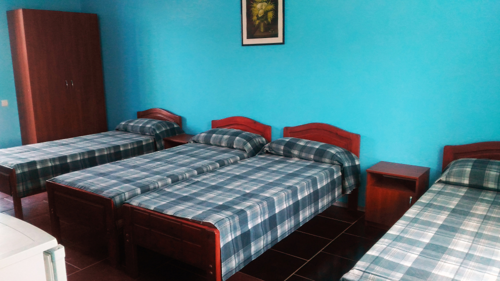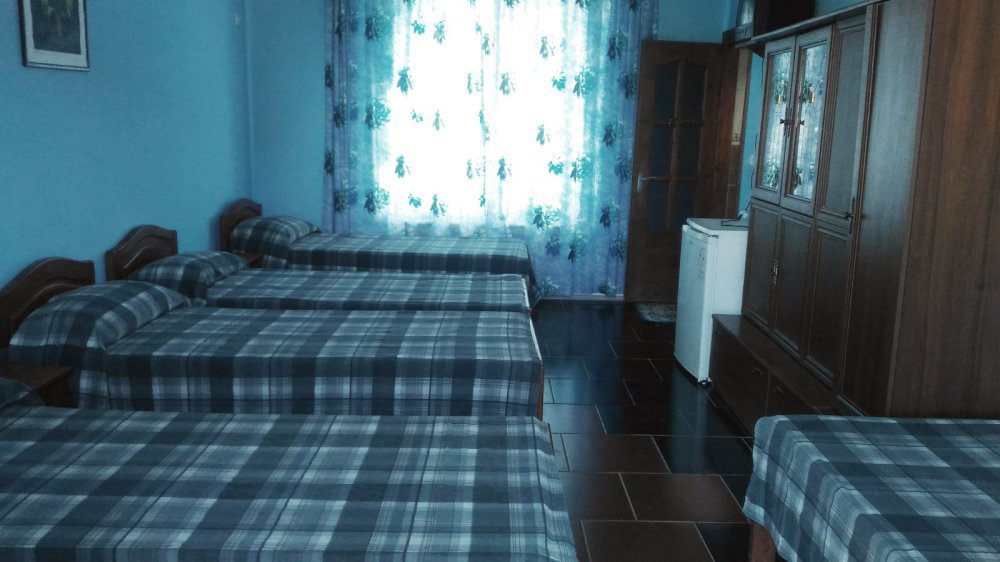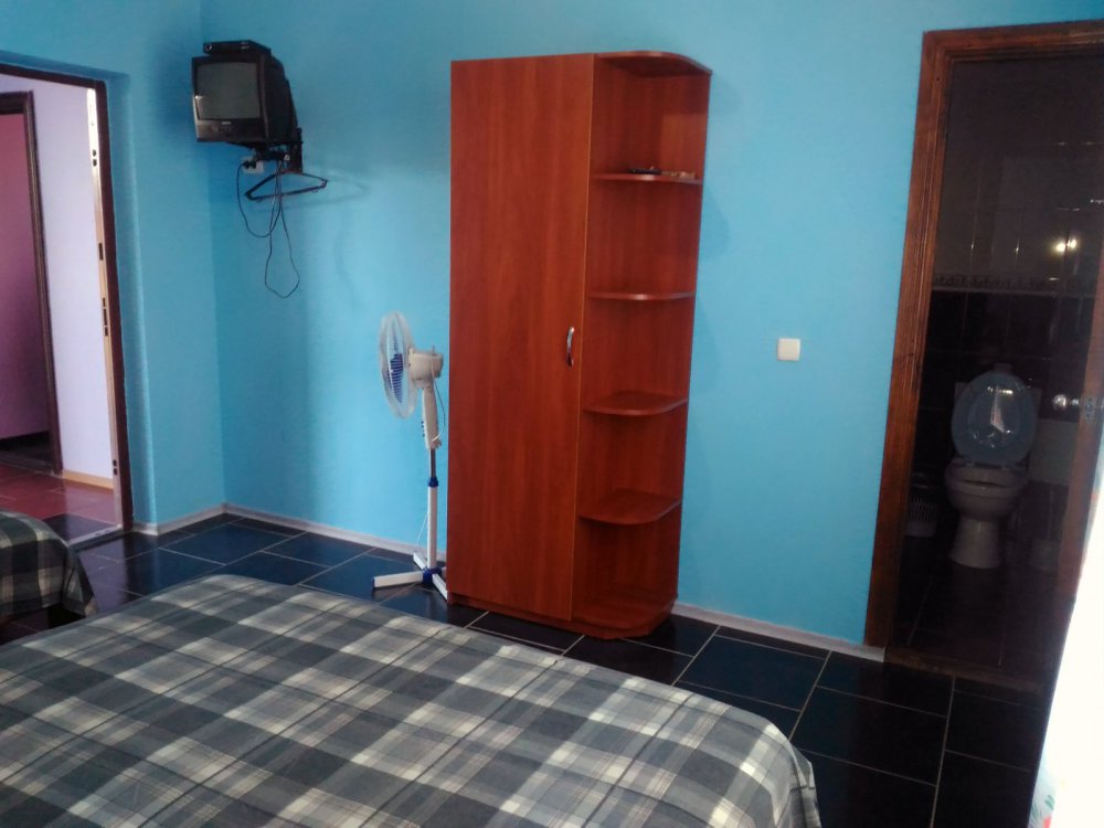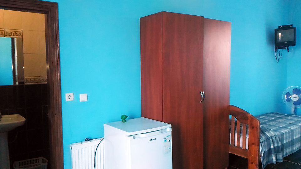 Просторная комната с высокими потолками и хорошей вентиляцией. Деревянные кровати с хорошими ортопедическими матрацами, телевизор, тумбочки, шкаф, холодильник.