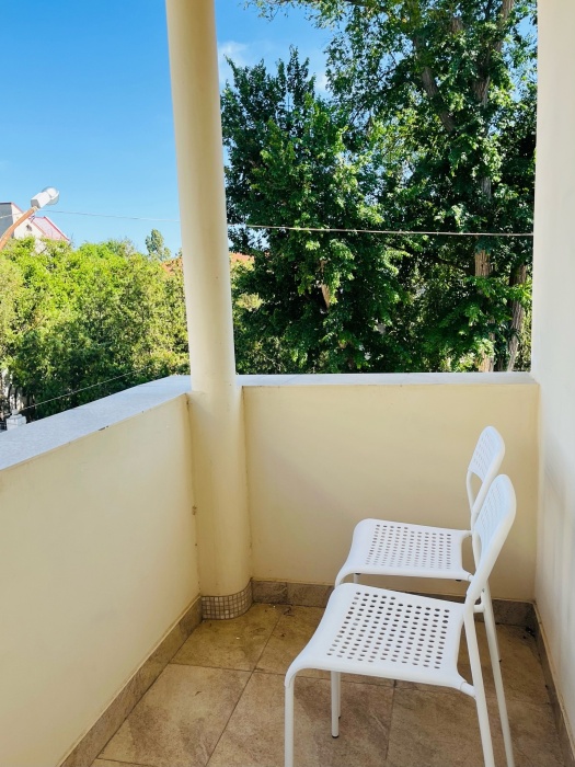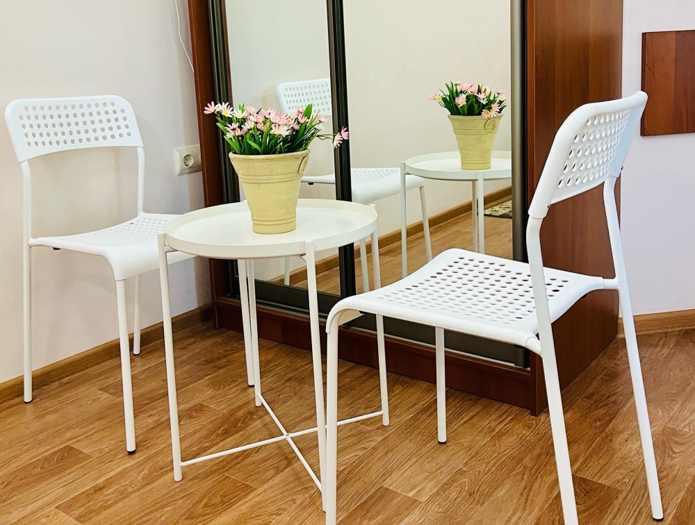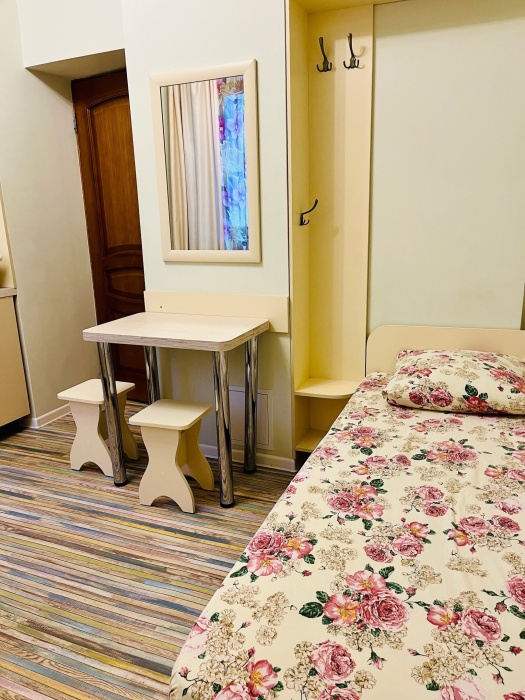 два стула и столик ,сушилка для белья . Общая кухня рядом с номером оборудована: электрочайником, посудой, электроплитой, СВЧ-печью.