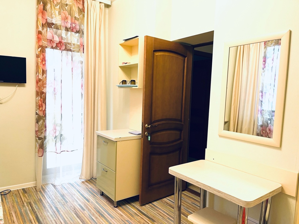 В НОМЕРЕ : вешалка для одежды, большая двуспальная и односпальная кровати с ортопедическими матрасами, ТВ, интернет ,кондиционер , шкаф-купе, тумбочки, комод, стулья Большой душ-туалет, сушилка для белья во.