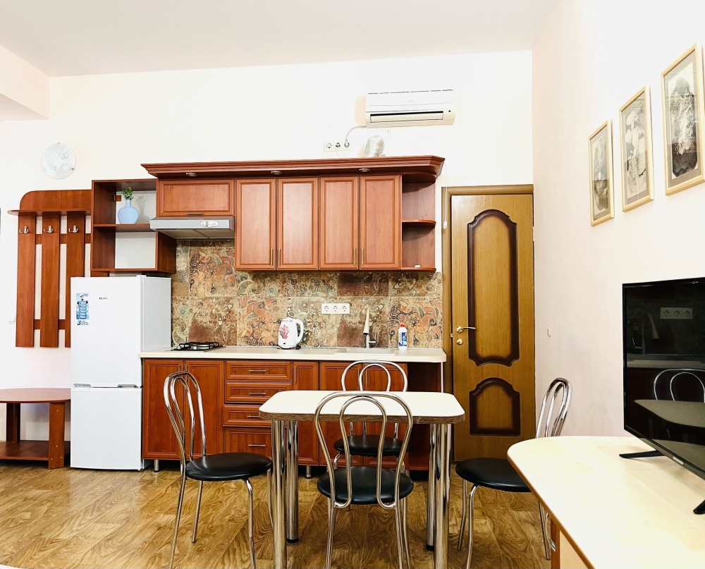 Наша вилла это - комфортабельные однокомнатные и двухкомнатные номера с кухнями. Вилла находится на первой линии от моря, рядом с набережной Горького.