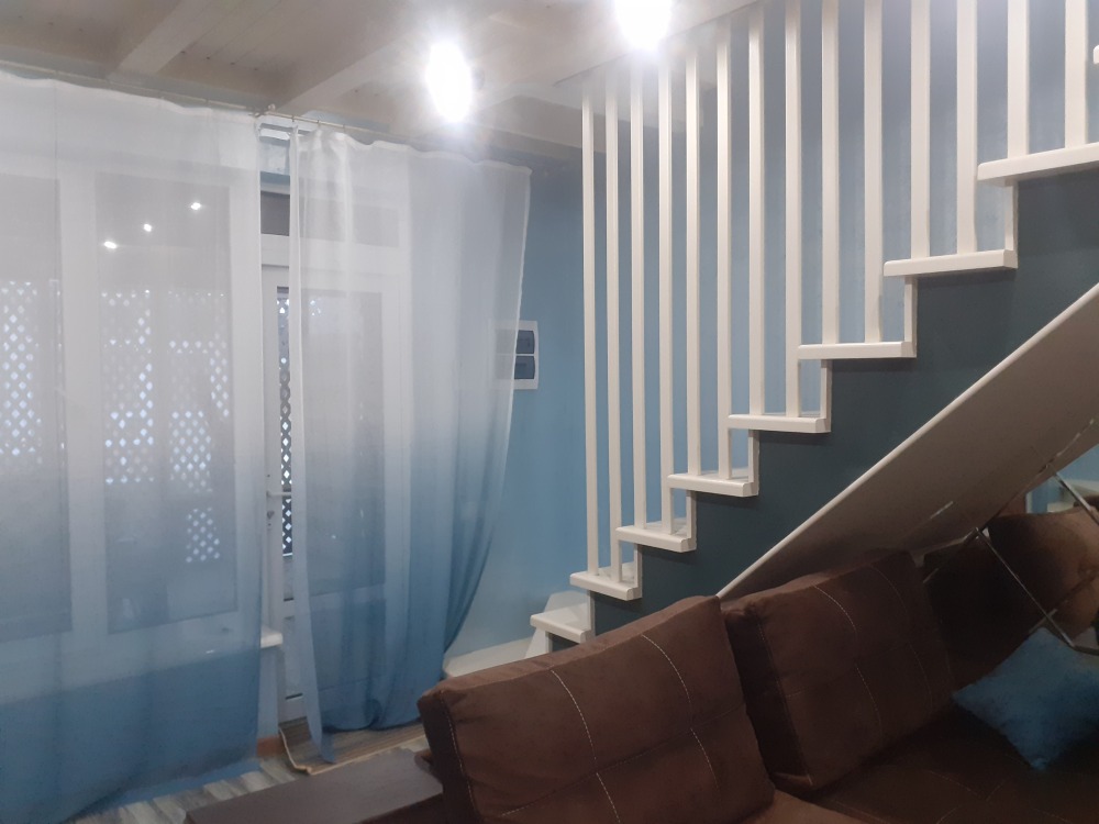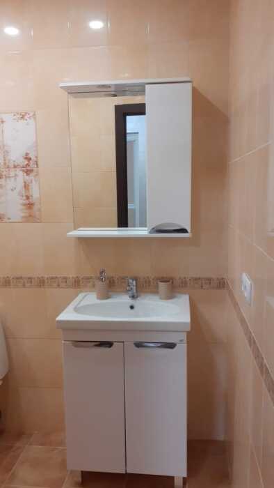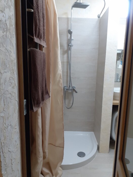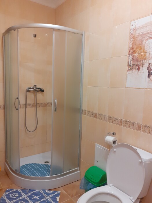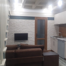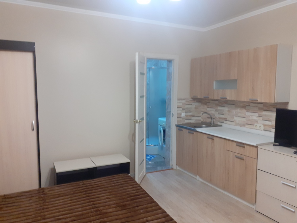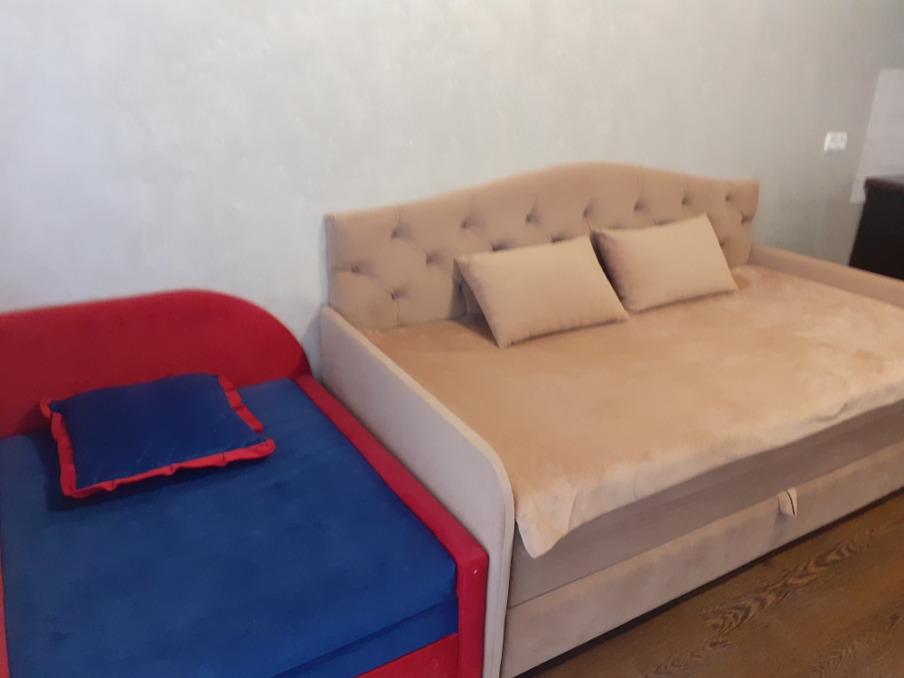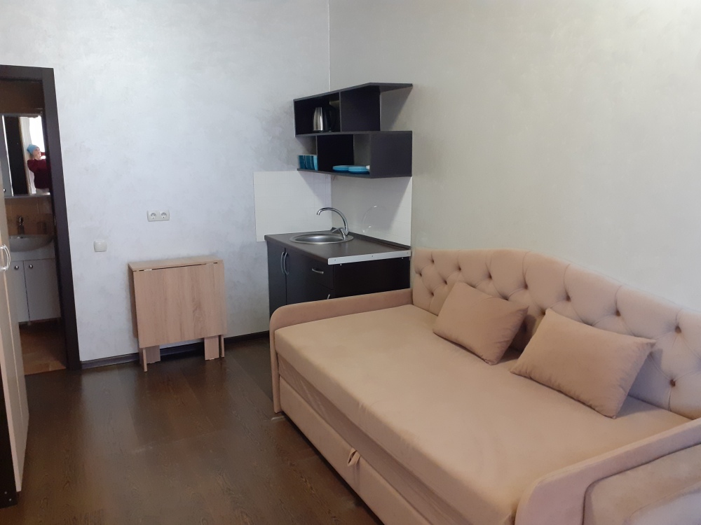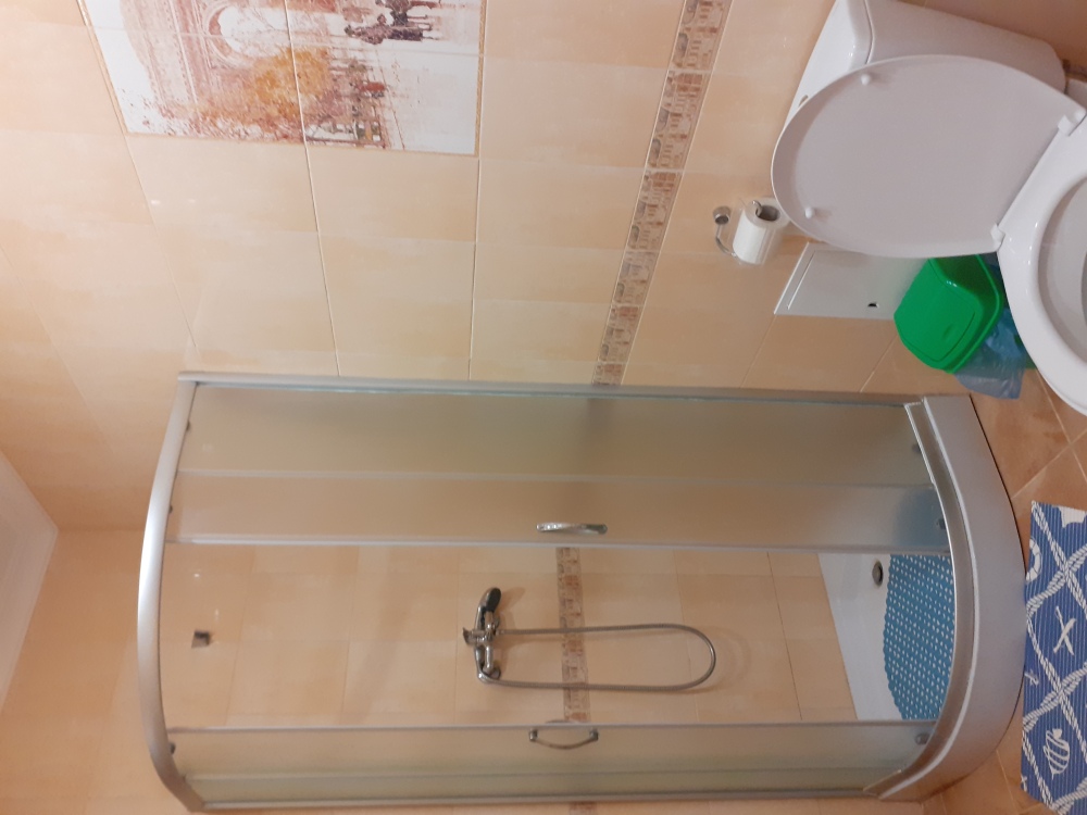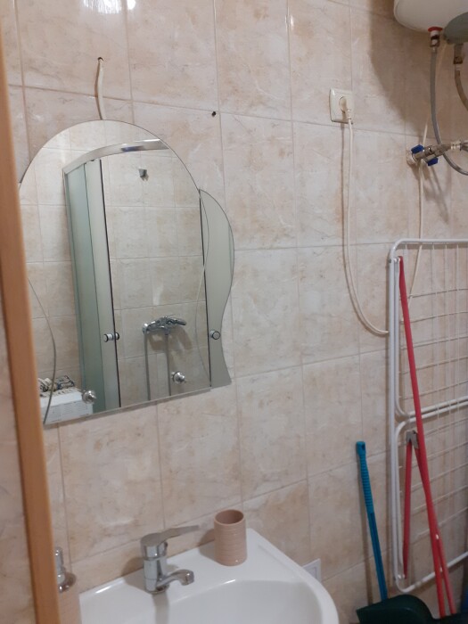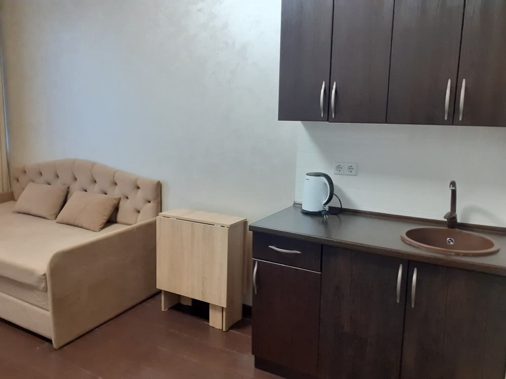 В номерах: раскладной диван+доп. место, необходимая мебель( шкаф, комод, стол, стулья), маленькая кухня, душевая комната с туалетом, холодильник, кондиционер, интернет, TV кабельное, вся необходимая посуда. Апартаменты трёхместные. До моря 50 метров