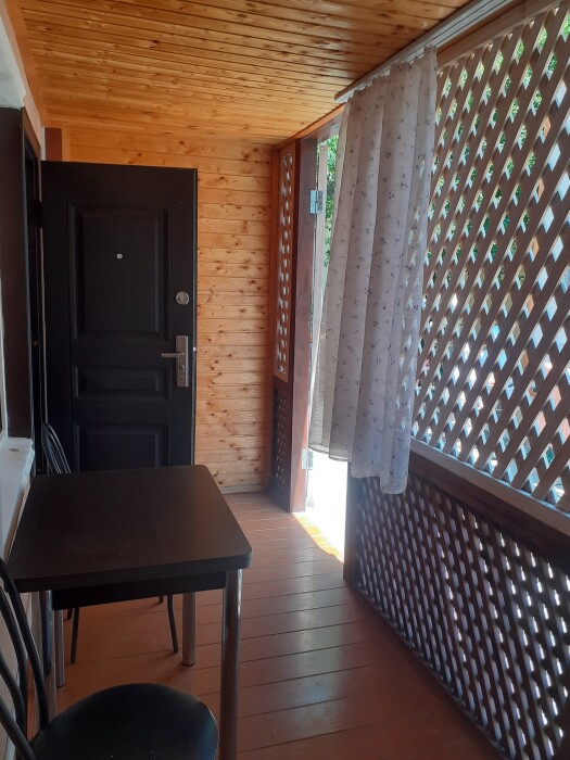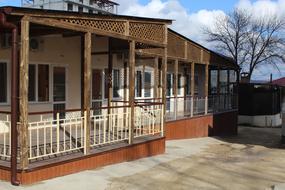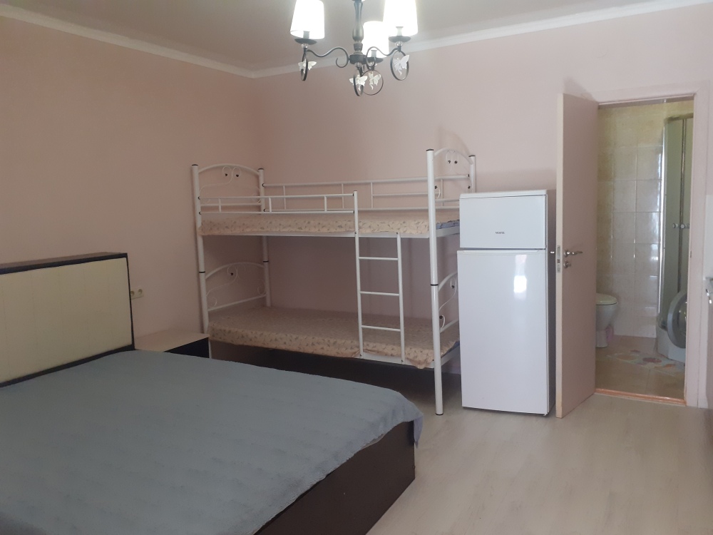 В номерах: раскладной диван и двухъярусная кровать, необходимая мебель (шкаф, комод, стол, стулья), кухня, душевая комната с туалетом, холодильник, кондиционер, интернет, TV кабельное, вся необходимая посуда. До моря 50 метров