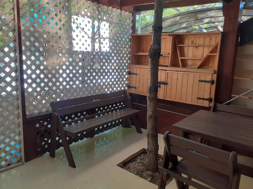 - летняя терраса с удобной деревянной мебелью на 6-8 человек и мангальной зоной.