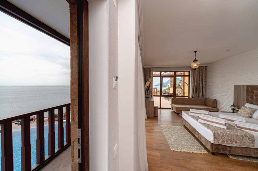 - Дополнительные сервисы: открытый бассейн, балконы с видом на море, бесплатная стоянка для гостей.