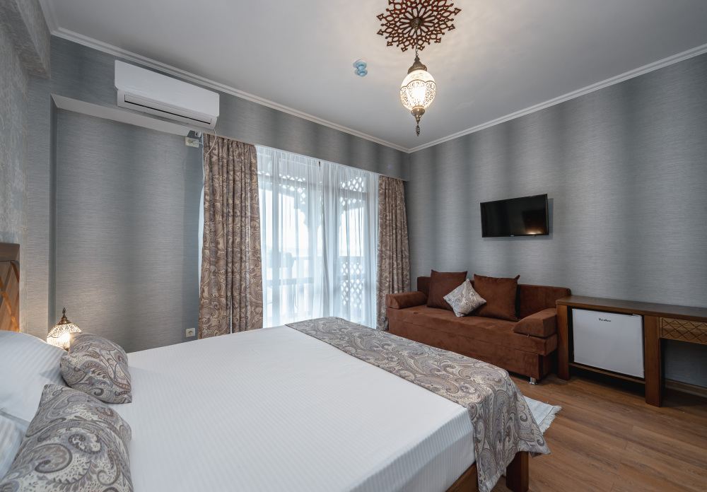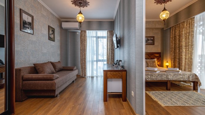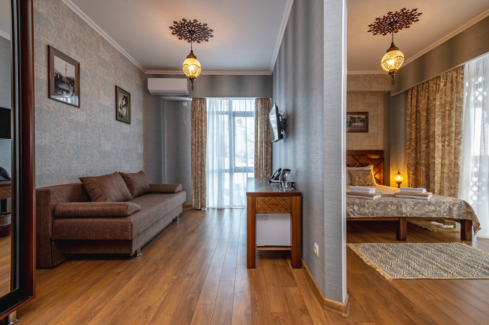 Этно-отель объединяет в себе великолепие древних дворцов с роскошным оформлением, и современные удобства и технологии для вашего комфорта.