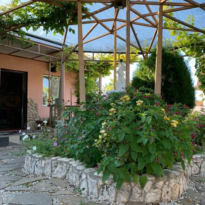 Мы приглашаем Вас отдохнуть в удобных 2-3-4-местных номерах. В 2-3-местных номерах: кровати, полочки, шкаф для одежды, вентиляторы, индивидуальный санузел с постоянной горячей и холодной водой (своя скважина). В 4-местных номерах: кондиционер,телевизор, холодильник. У каждого номера есть своя веранда с удивительно-экзотической зеленью, где вы сможете каждым вечерним теплым и чистым воздухом насладиться со своей семьей, друзьями, вкусным популярным Крымским вином, а также послушать тихую спокойную музыку. В каждом номере холодильник и wi fi