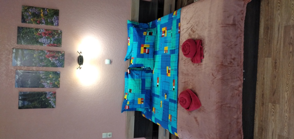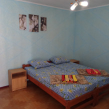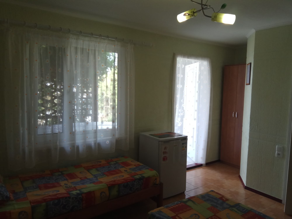 В номере есть вентилятор. Стоят 2 полуторные кровати, которые передвигаются, две тумбочки, шкаф для хранения вещей, холодильник. Так же в номере есть санузел и душ (холодная и горячая вода круглосуточно). Вход в номер у всех отдельный. Возле каждого номера есть своя верандочка, где стоит стол и стулья. Здесь можно просто отдохнуть или покушать. Веранду украшает очень красивая озелененная жимолость, которая всегда создаст вам уют и теневую зону.
