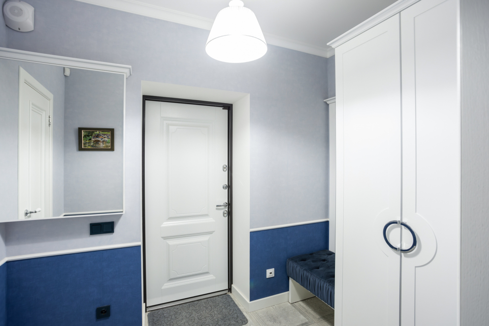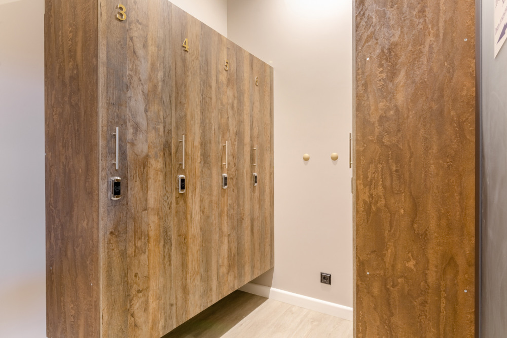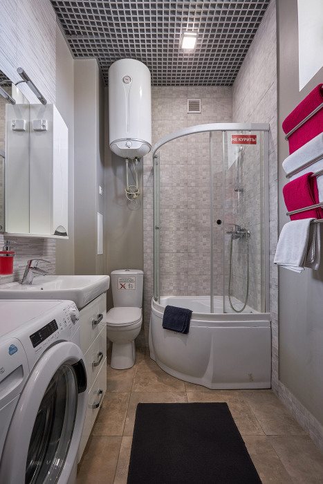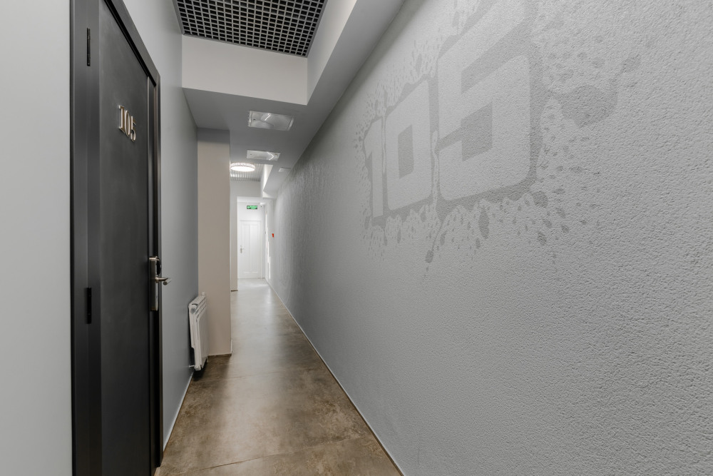 Номер расположен на 0 этаже. Рядом комната с гладильными принадлежностями и стиральной машинкой.