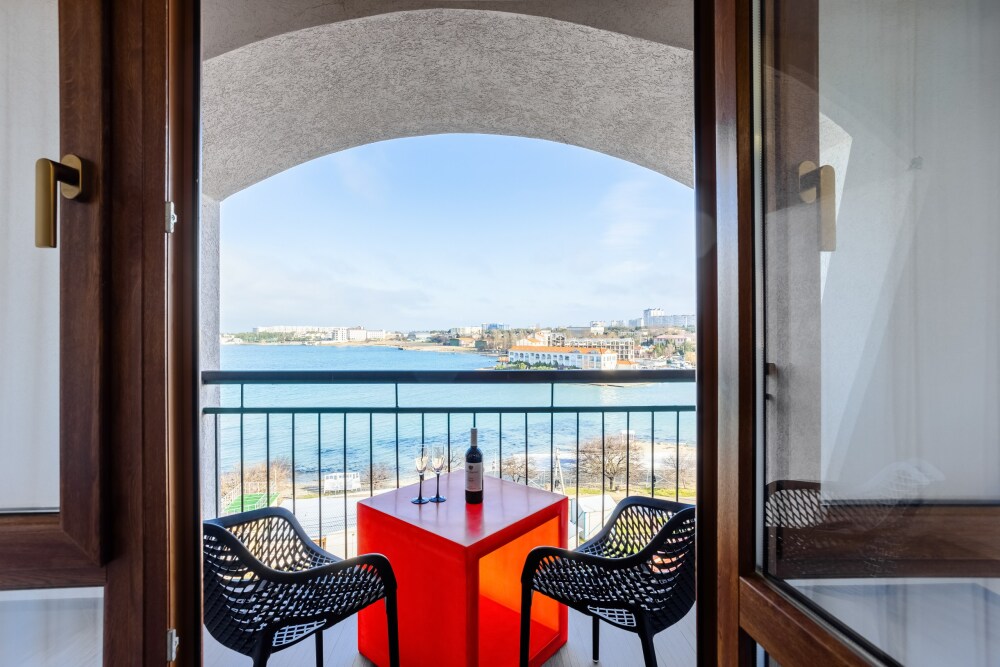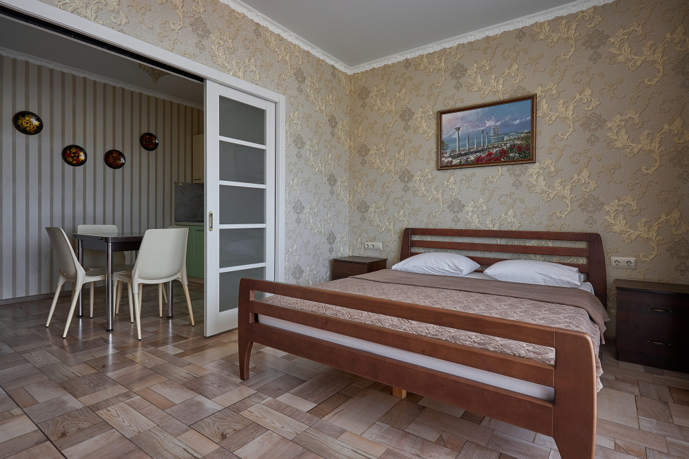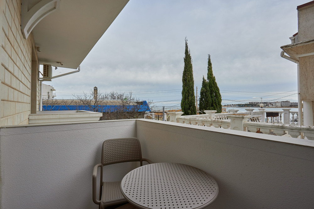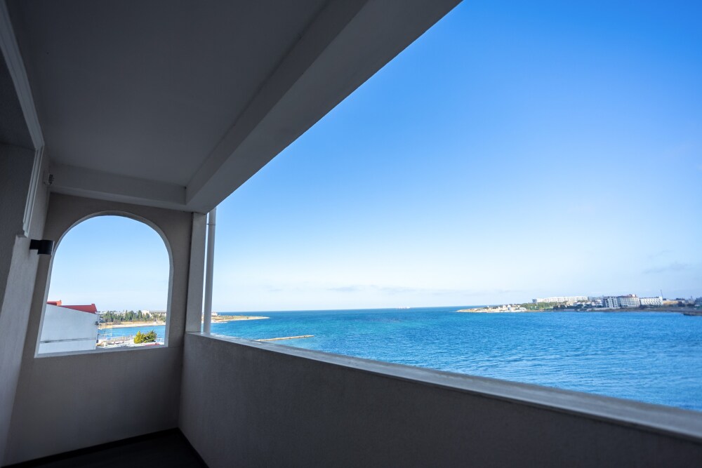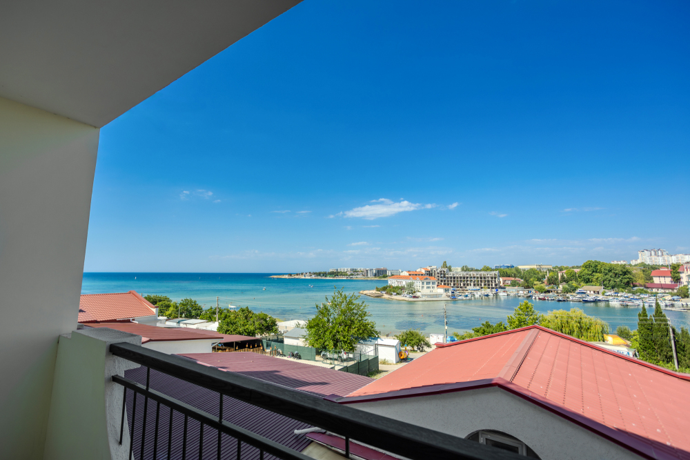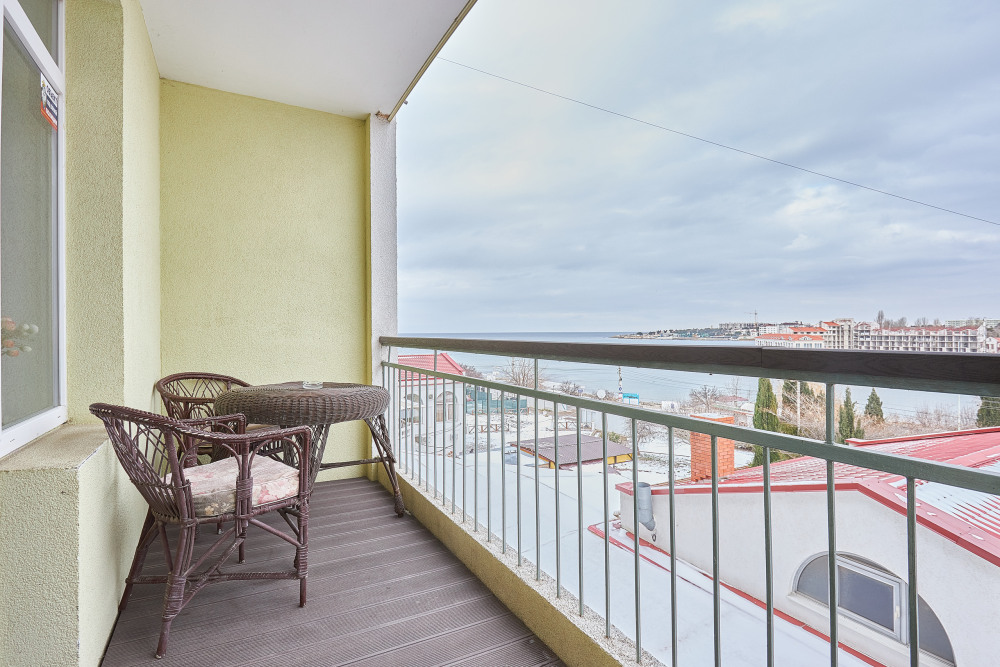 Двухкомнатные апартаменты со спальней и великолепным видом на море и бухту Омега. Вид с балкона позволит насладиться свежим морским воздухом, также можно наблюдать за красивыми Крымскими рассветами или провести романтический вечер на фоне неповторимого заката.