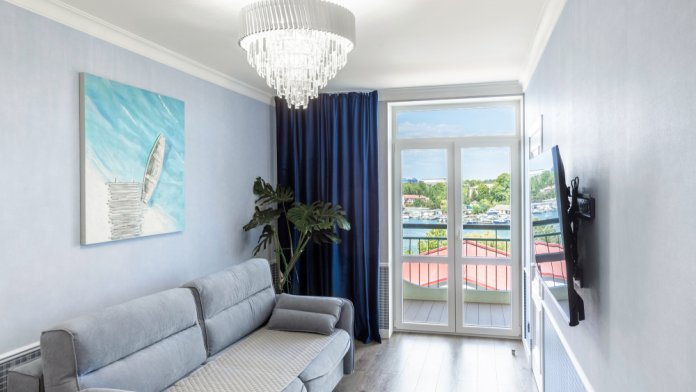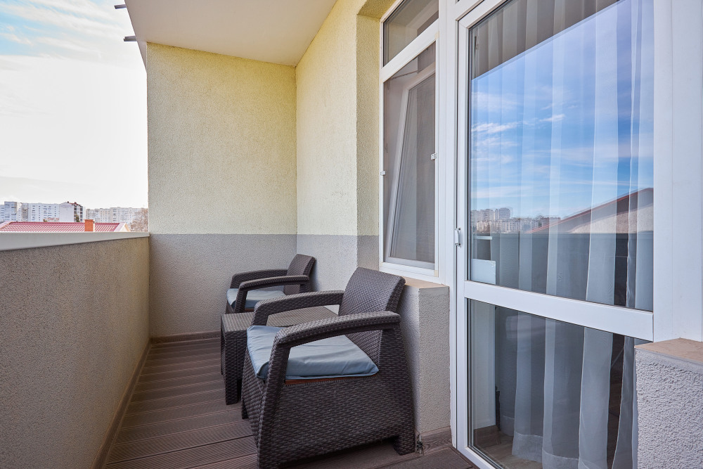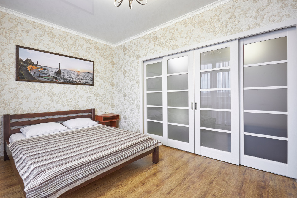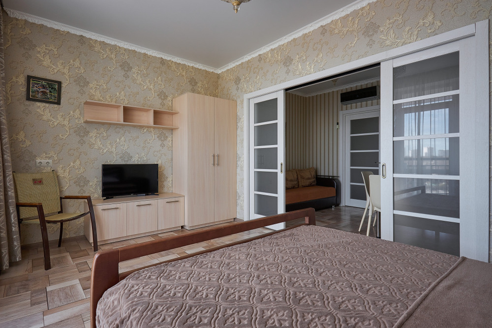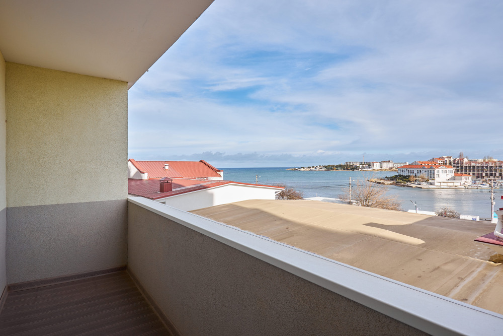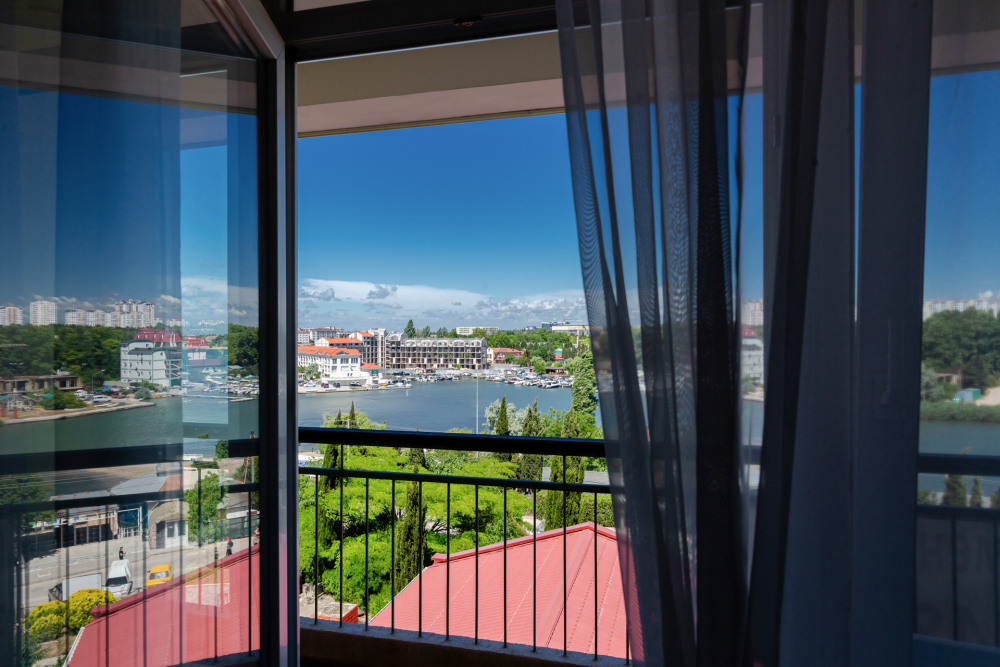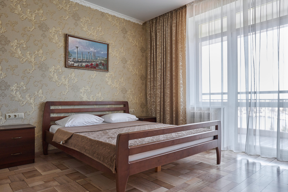 Двухкомнатные апартаменты со спальней и великолепным видом на море и бухту Омега. Вид с балкона позволит насладиться свежим морским воздухом, также можно наблюдать за красивыми Крымскими рассветами или провести романтический вечер на фоне неповторимого заката.