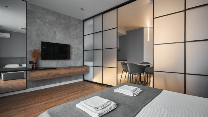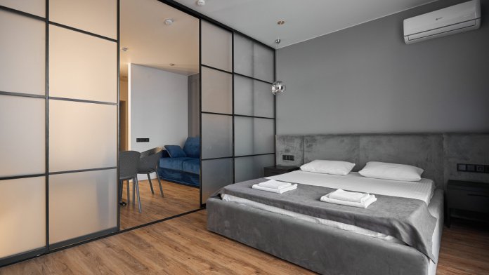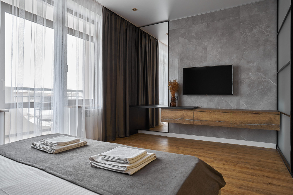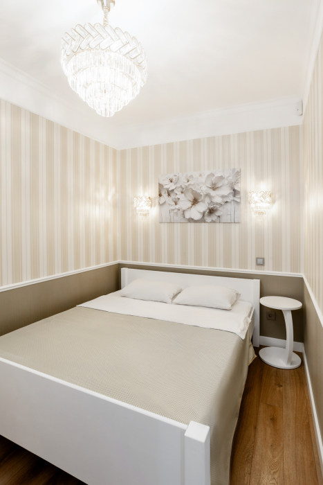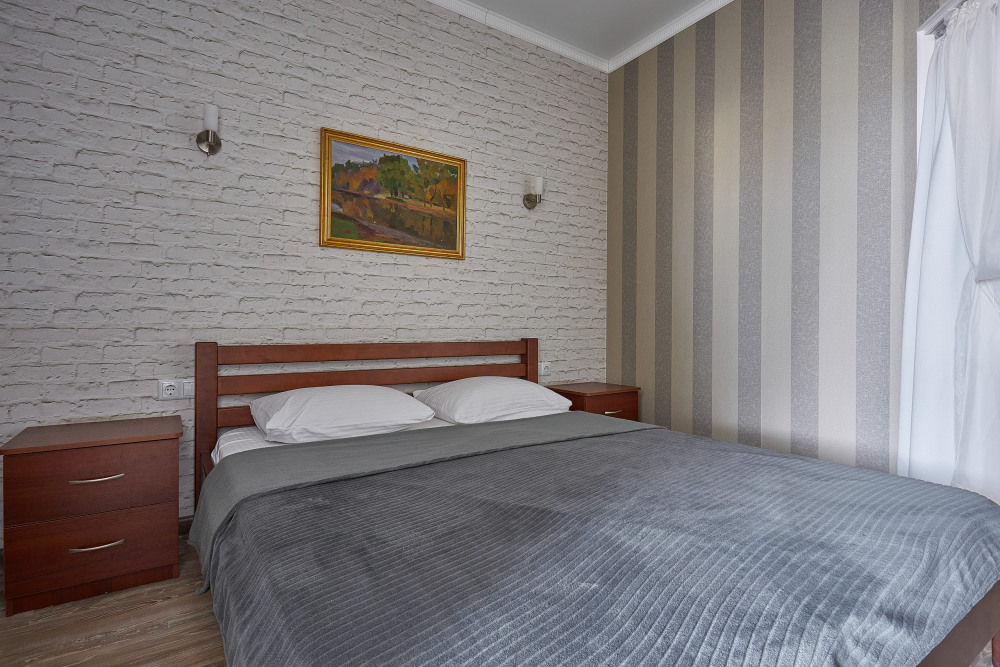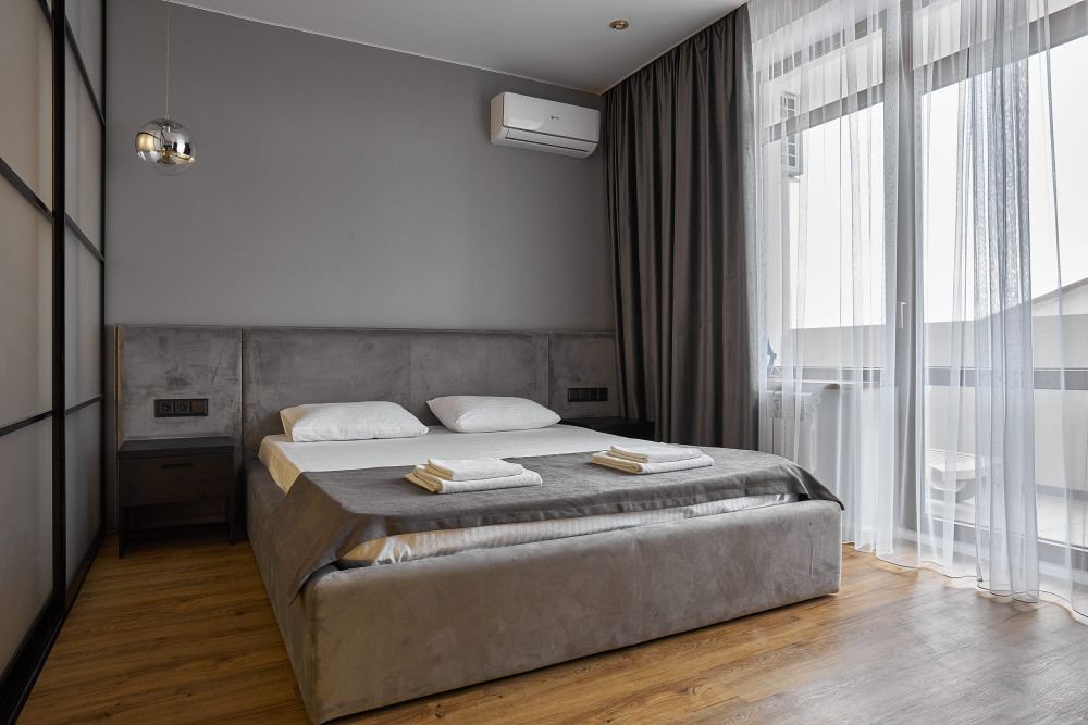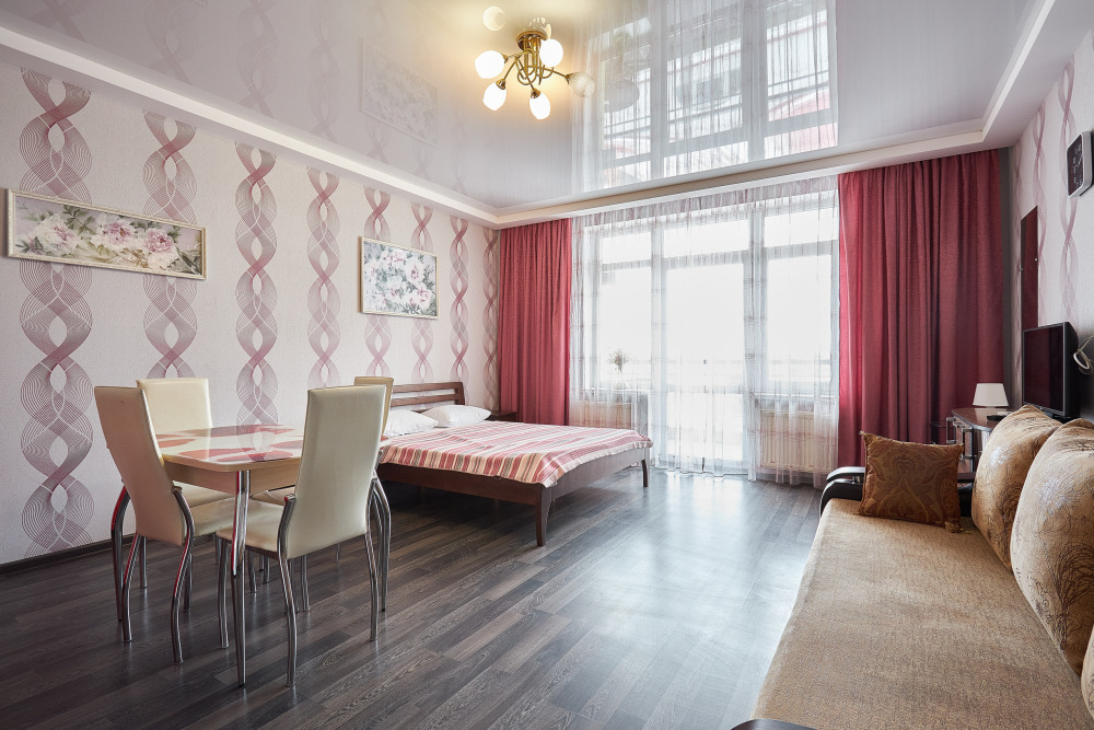 Апартамент станет оптимальным решением для размещения 2-х отдыхающих (просторная двуспальная кроват) и для 2-х гостей диван-кровать. Вас