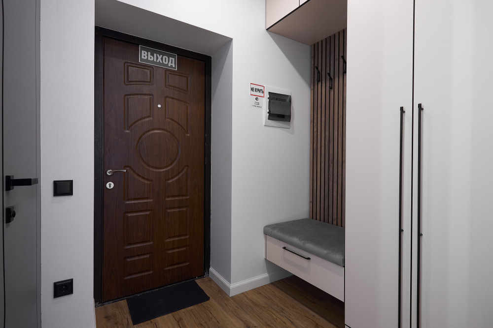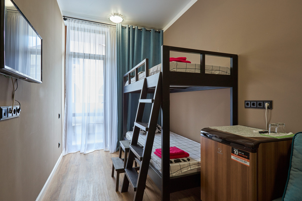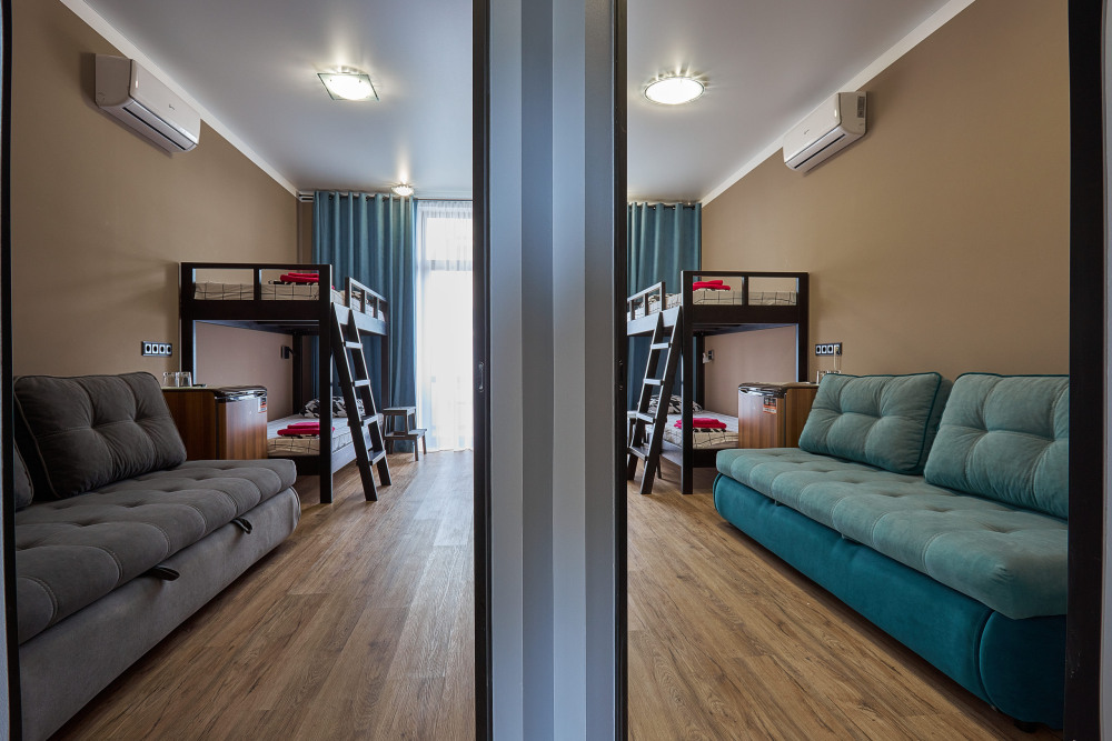 Двухкомнатный номер со всеми удобствами. Рядом общая кухня с дизайнерским ремонтом.