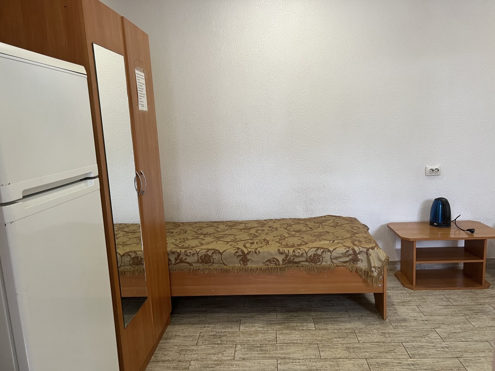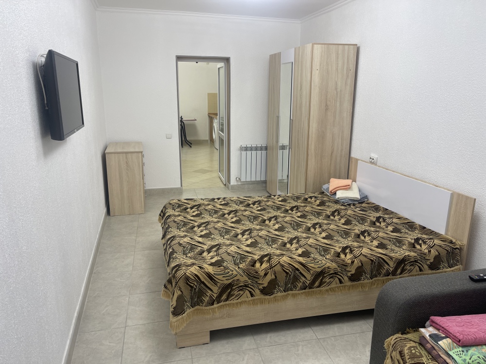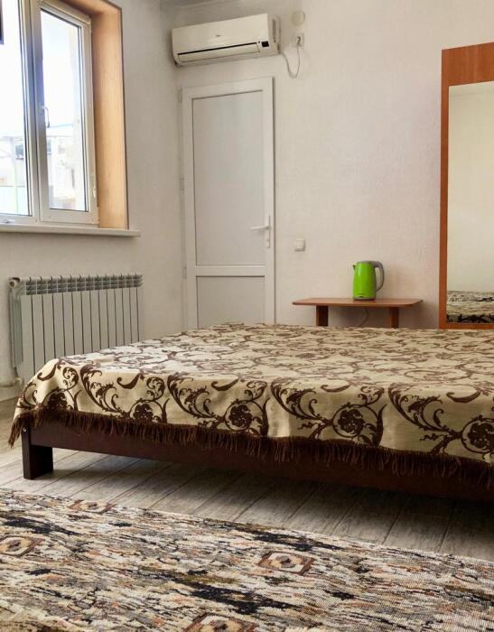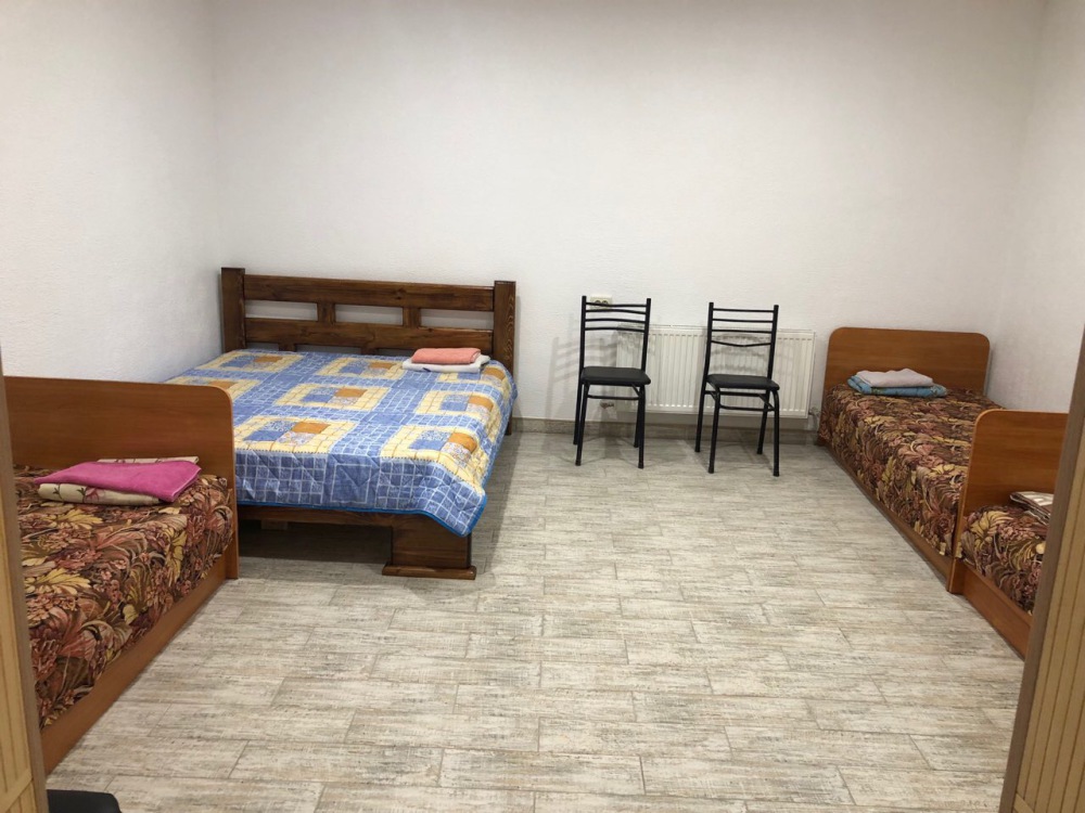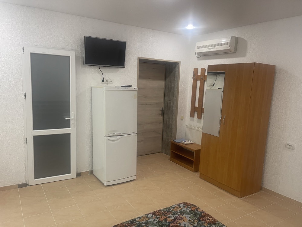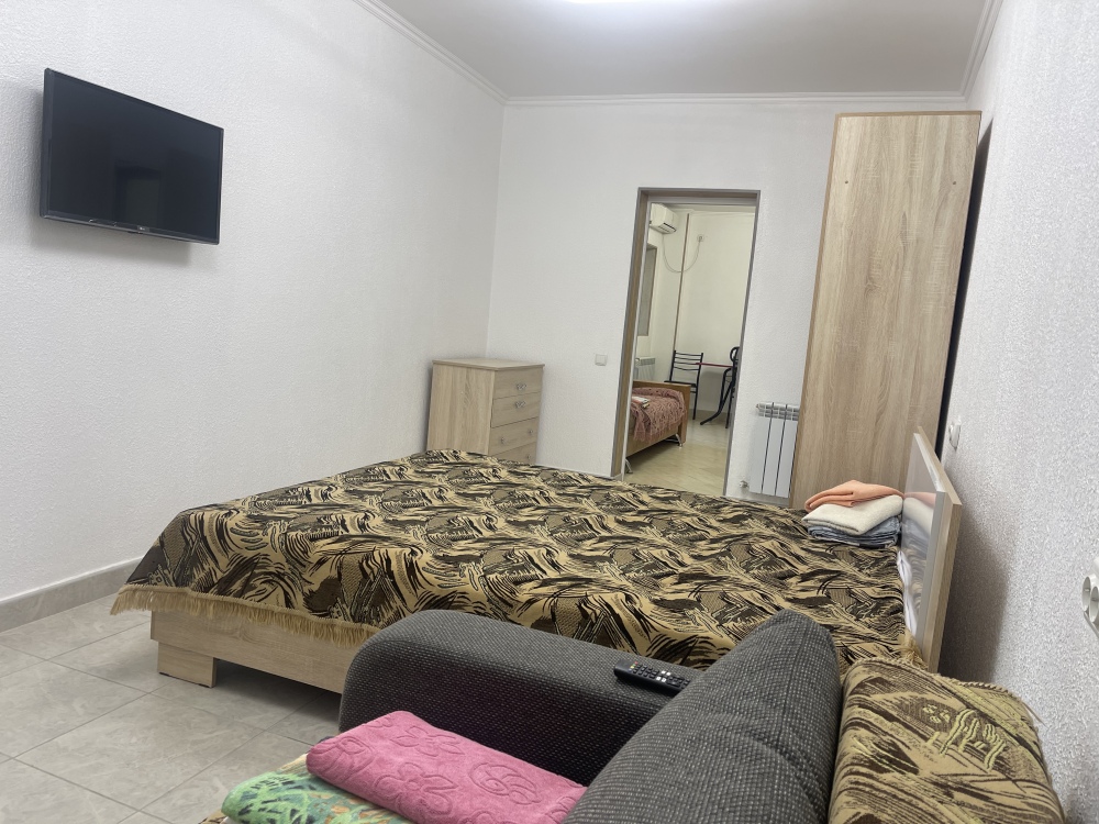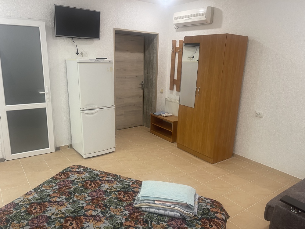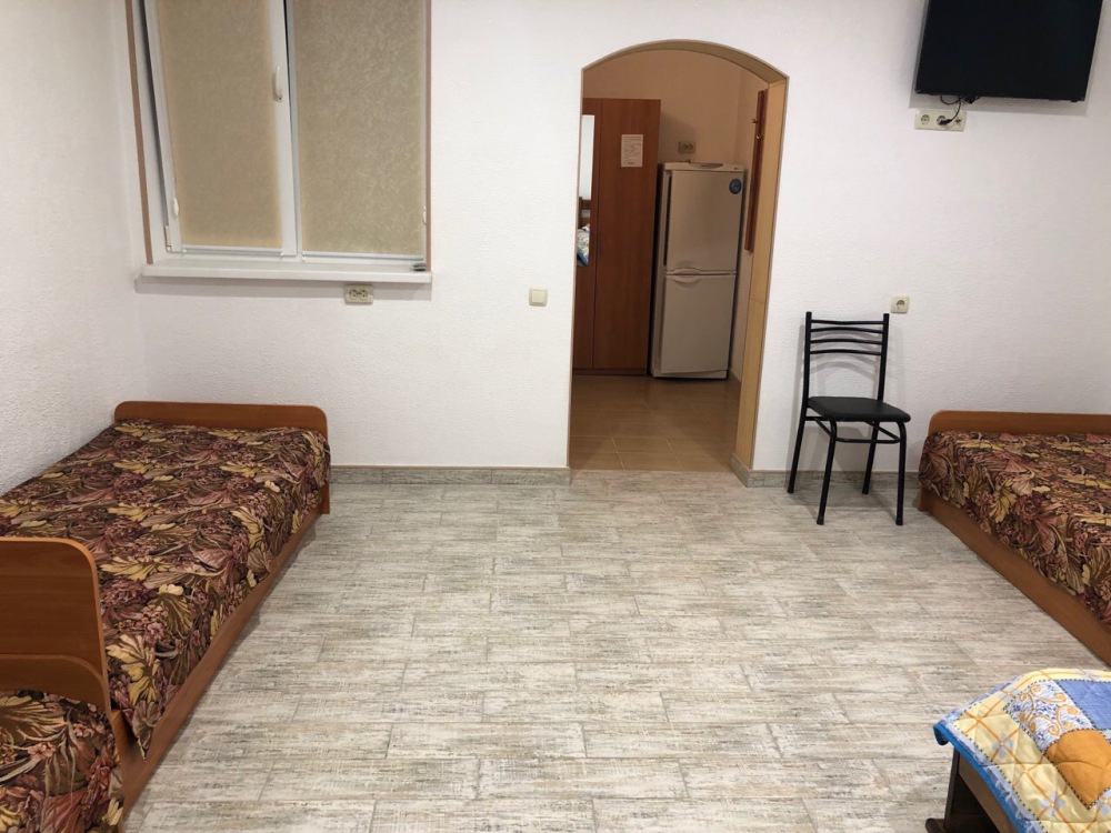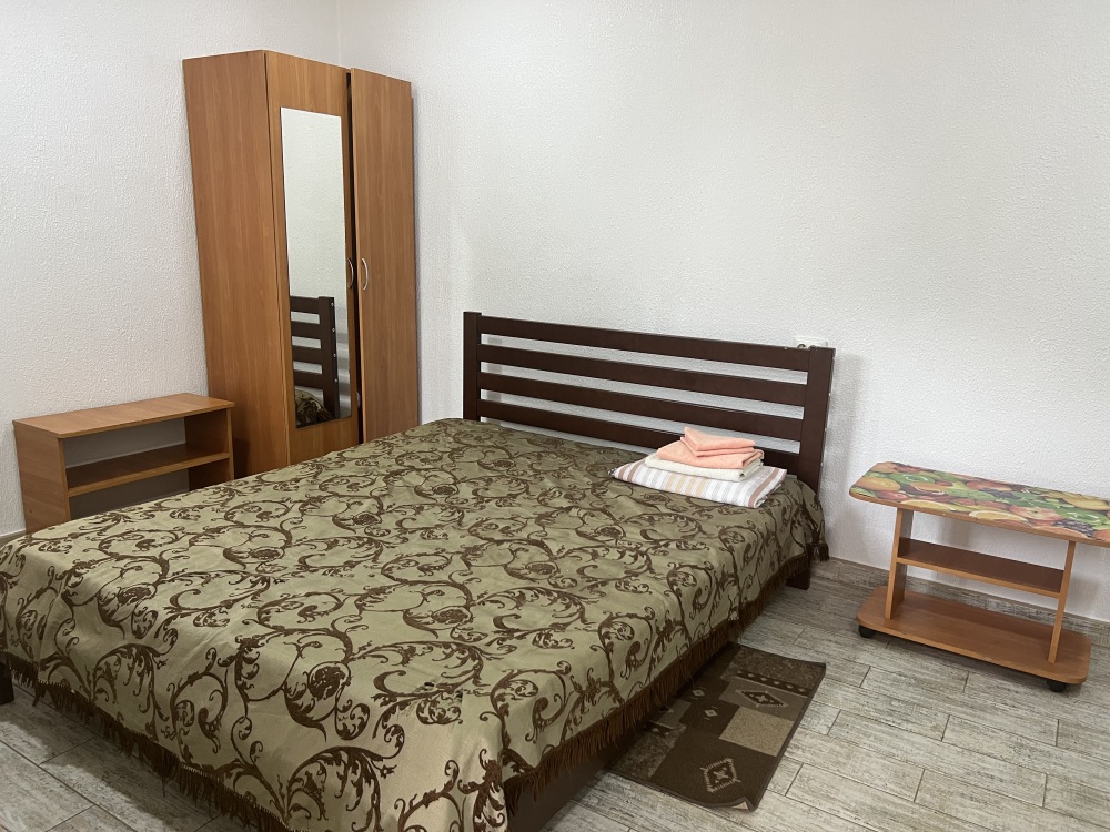 В доме все комнаты оборудованы: телевизором, холодильником, кондиционером, санузлом с холодной и горячей водой круглосуточно. В санузле – душевая кабинка, умывальник, зеркало, туалет. Также в комнате имеется - шкаф для одежды и вещей, полочка для обуви, вешалка, зеркало, прикроватные тумбочки. Комнаты рассчитаны на 2-5 человек. В комнатах чисто и уютно. Смена постельного белья, полотенец и уборка комнаты - бесплатно. Каждая комната с отдельным входом. Возле комнаты - кухня, на которой есть: плита, посуда, обеденный стол, стиральная машинка, гладильная доска и утюг.