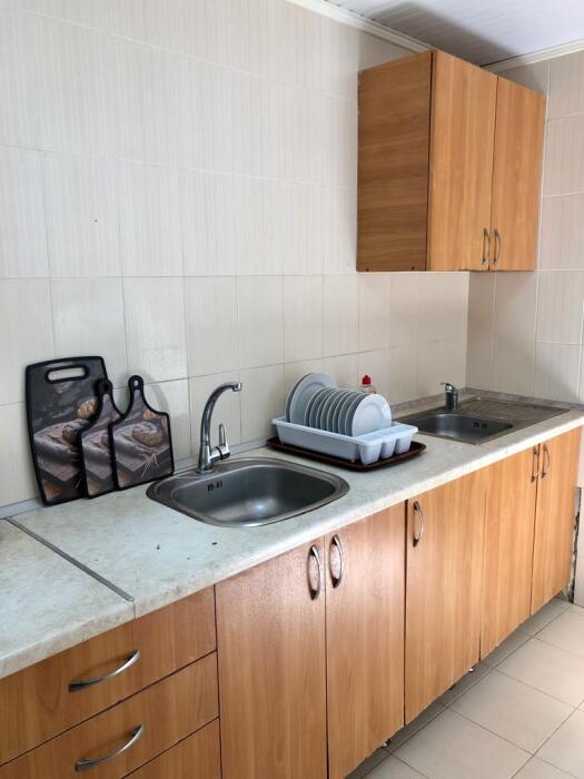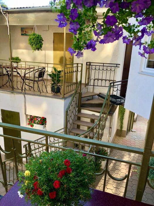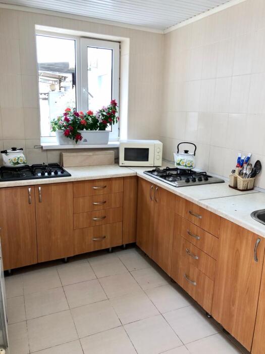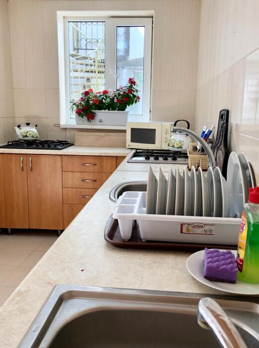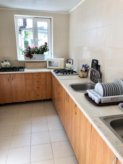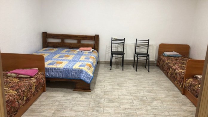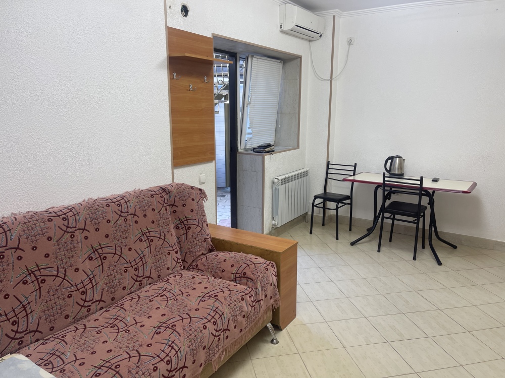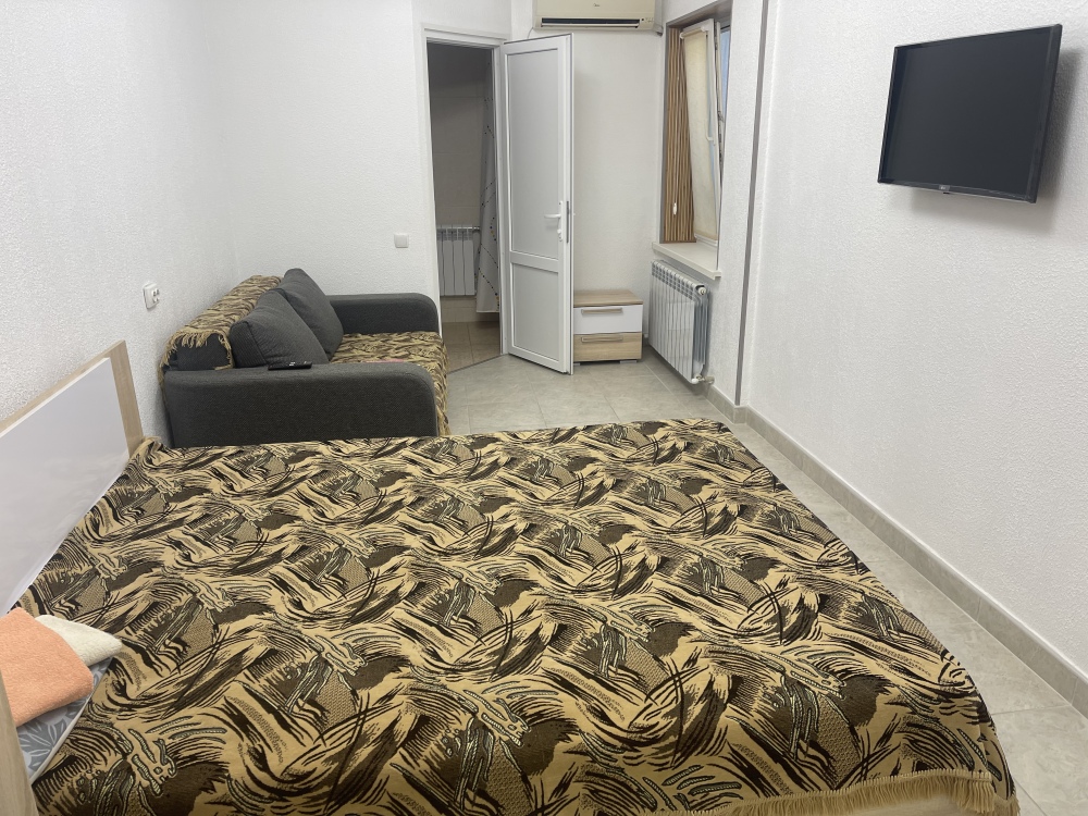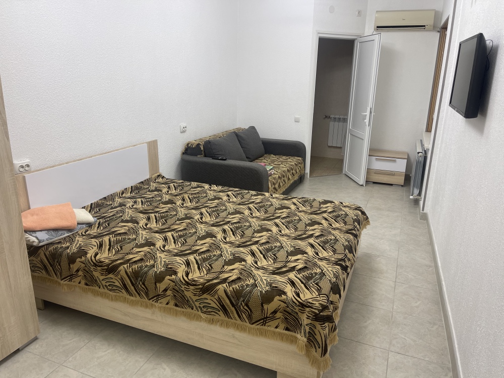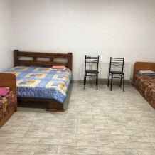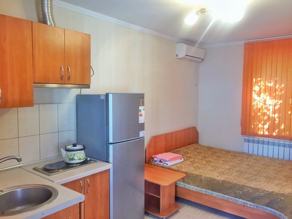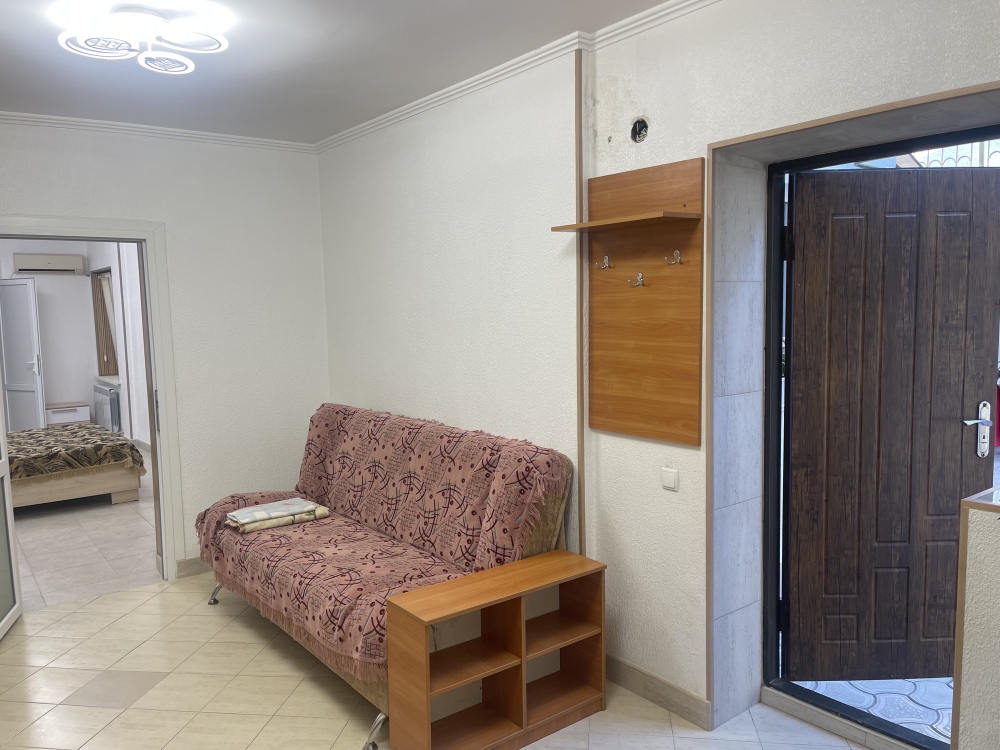 В доме все комнаты оборудованы: телевизором, холодильником, кондиционером, санузлом с холодной и горячей водой круглосуточно. В санузле – душевая кабинка, умывальник, зеркало, туалет. Также в комнате имеется - шкаф для одежды и вещей, полочка для обуви, вешалка, зеркало, прикроватные тумбочки. Комнаты рассчитаны на 2-5 человек. В комнатах чисто и уютно. Смена постельного белья, полотенец и уборка комнаты - бесплатно. Каждая комната с отдельным входом. Возле комнаты - кухня, на которой есть: плита, посуда, обеденный стол, стиральная машинка, гладильная доска и утюг.