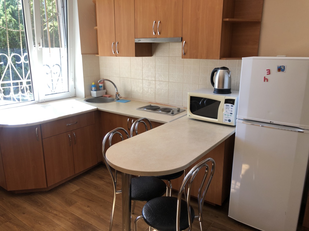 Каждый номер со своей кухней (эл.плита, раковина, электрочайник, микроволновая печь, весь кухонный инвентарь).