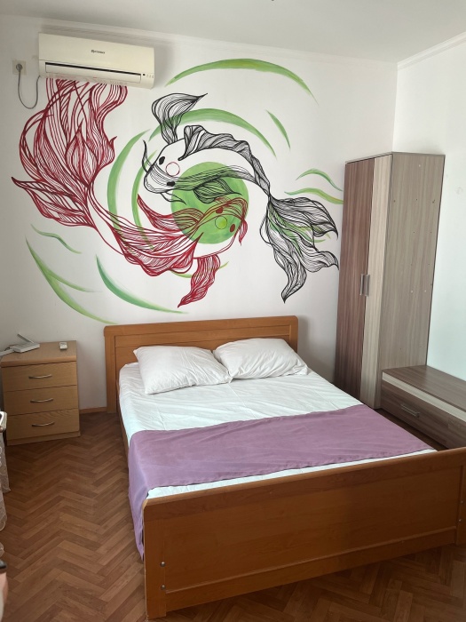 Евпатория ул Пушкина55в Дом на 4-6 человек-две комнаты, сан узел,кухня свой дворик ,беседка. . Первая комната- студия ( т е с кухней) 1 двухспальняя кровать ,диван раскладной,туалетный столик с зеркалом ,тумба для белья, интернет телевизор- плазма, холодильник ,С первой комнаты заходим во вторую : двухспальняя кровать ,шкаф,тумба для белья ,тумбочка. кондиционер и из этой комнаты входим в сан узел.( душ умывальник ,туалет) беседка, мангал, утюг, чистое постельное белье ,стиральная машина ,автостоянка, двор весь в цветах, фото в фотоальбоме у меня на страничке встреча с вокзала Евпатории возможна, Встреча с Симферополя и аэровокзала за оплату ,Рядом столовые, кафе, парк Фрунзе ,детские атракцеоны300 метров до аквопарка но у нас тихо Добро пожаловать!!!