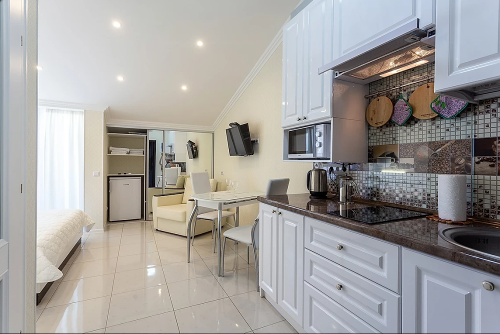 Наши апартаменты расположены в гостиничном комплексе «Fiolent Village», в одном из самых живописных мест Крыма – на мысе Фиолент.