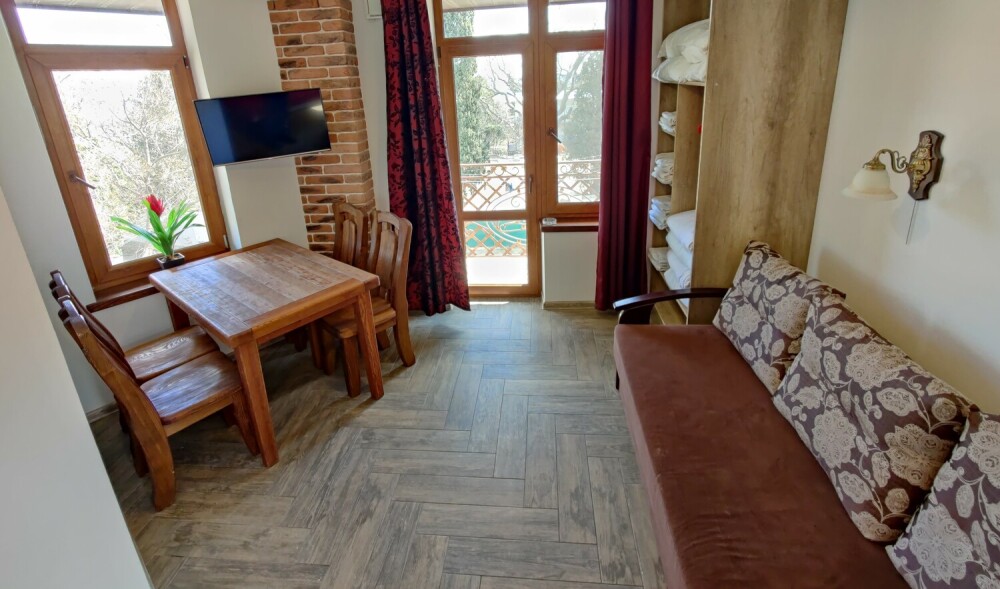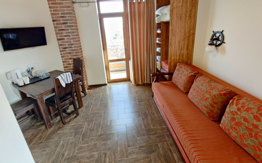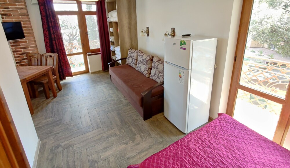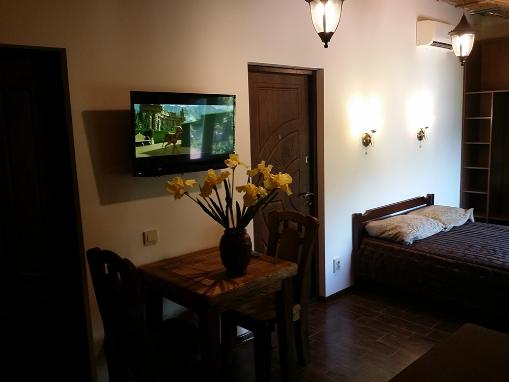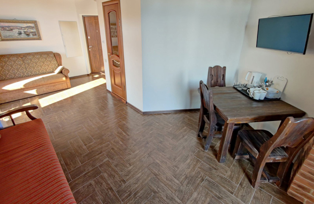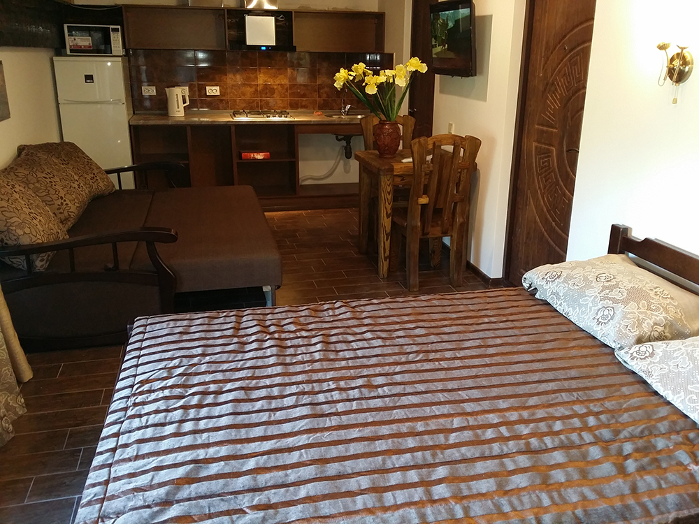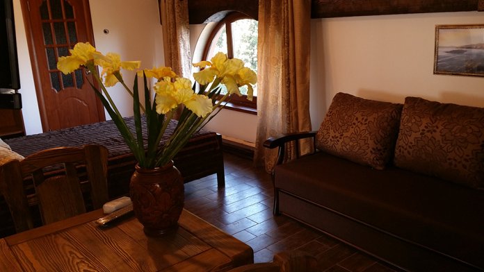 Все номера разные по площади и наполнению, но одинаково комфортабельные и уютные. Мы рады своим гостям и зимой, в номерах тёплые полы.
