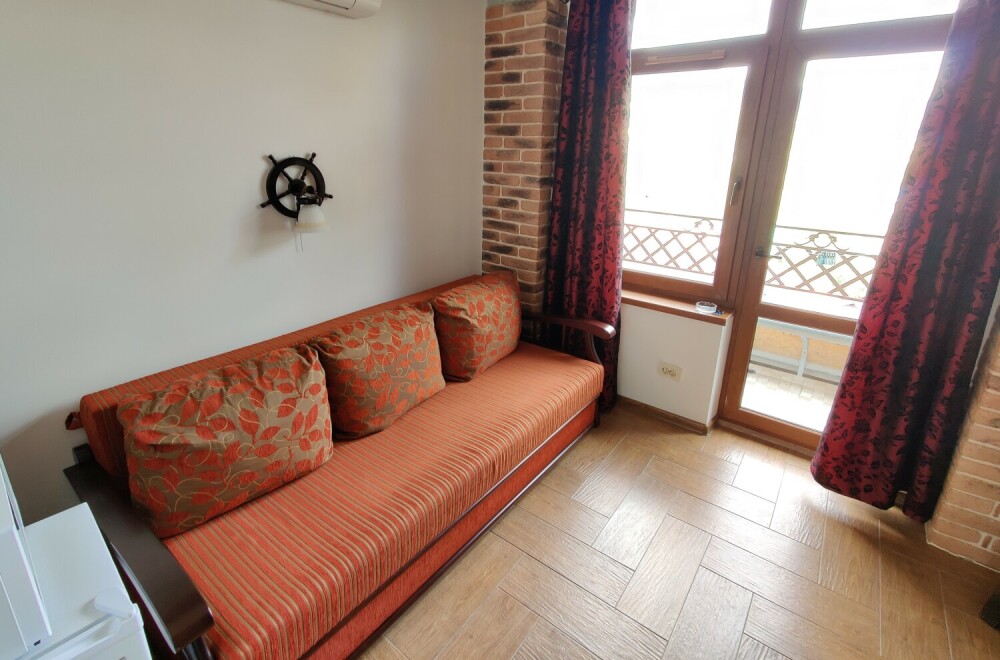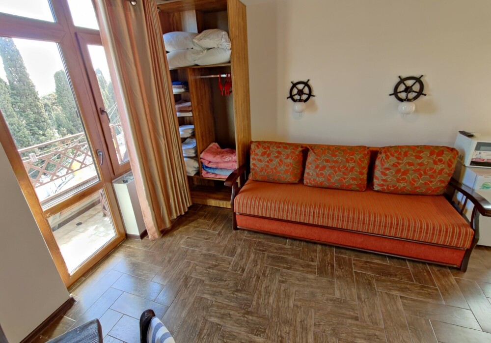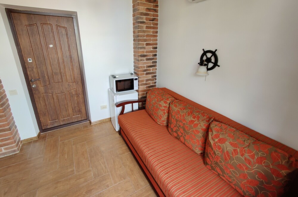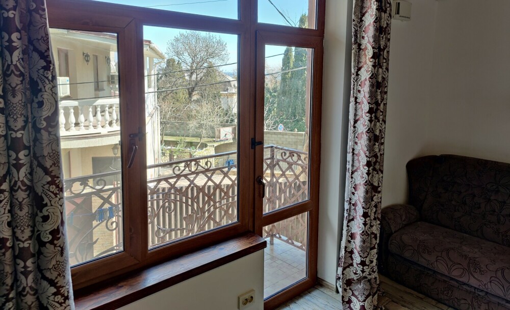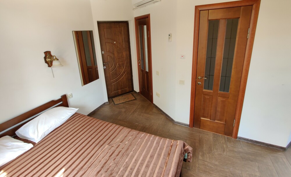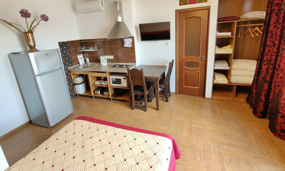 Угловой номер с двумя балконами. В номере есть микроволновая печь.холодильник, чайник , кондиционер, бойлер плазма.Цены примерные и зависят от количества жильцов и длительности проживания