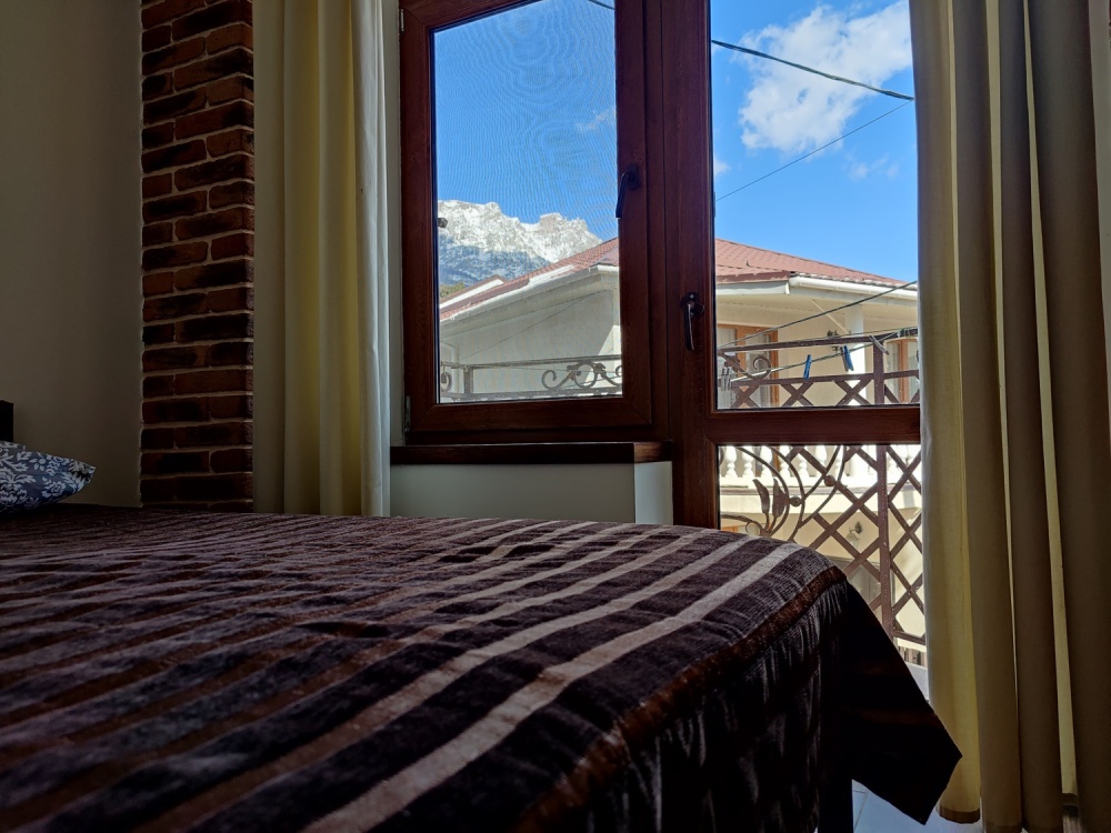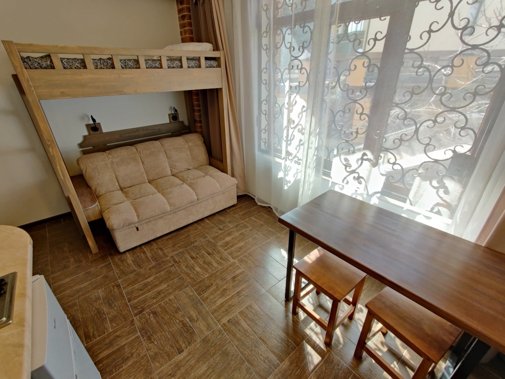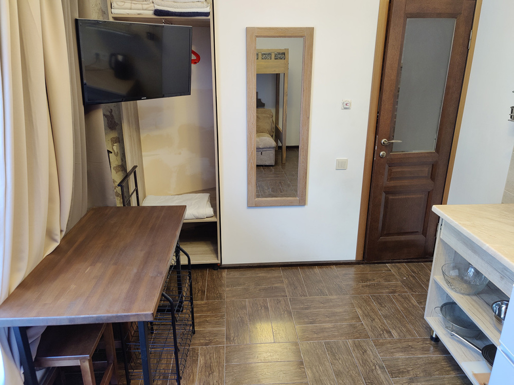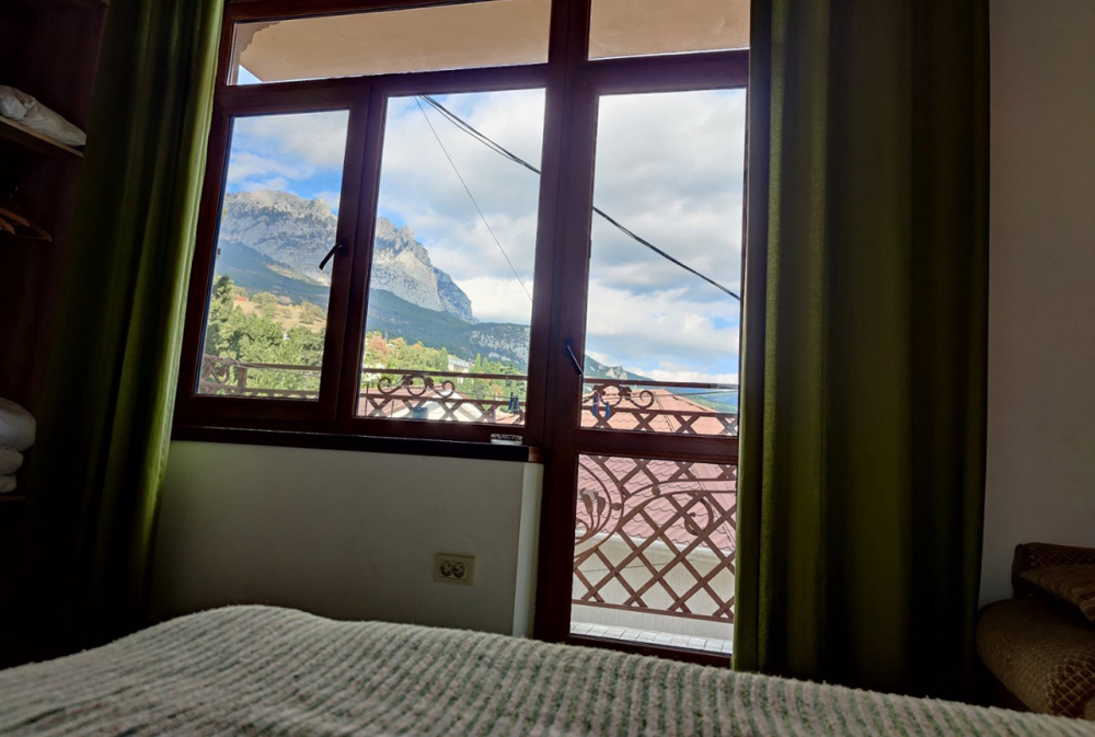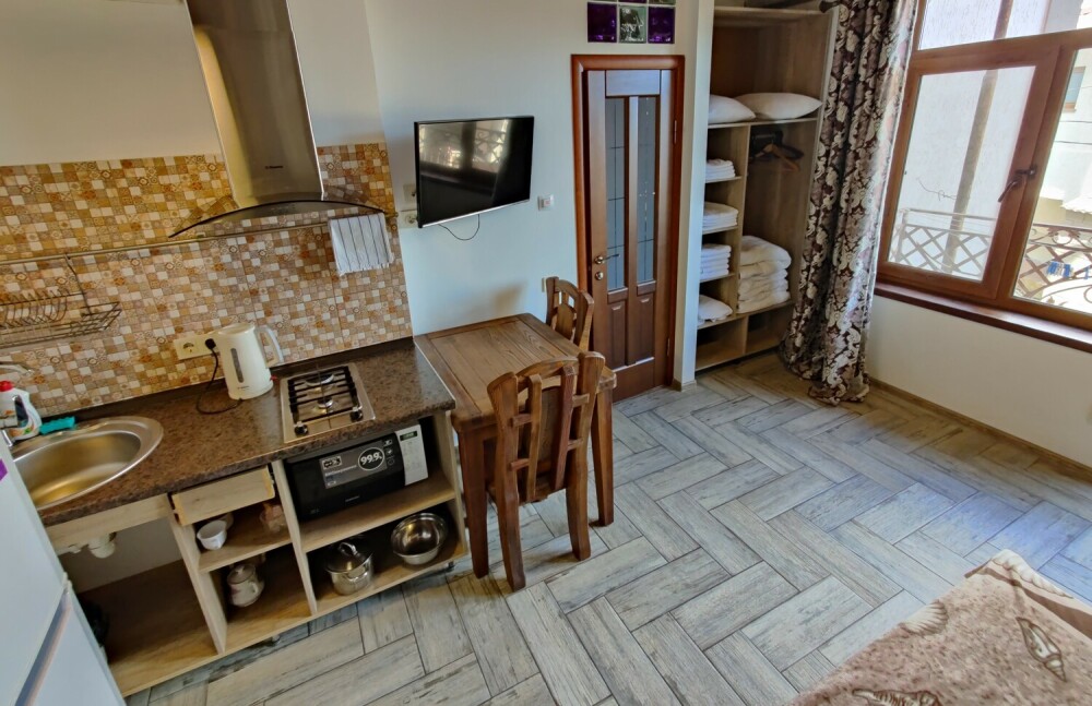 Угловой номер с двумя балконами. В номере есть микроволновая печь.холодильник, чайник , кондиционер, бойлер плазма.Цены примерные и зависят от количества жильцов и длительности проживания