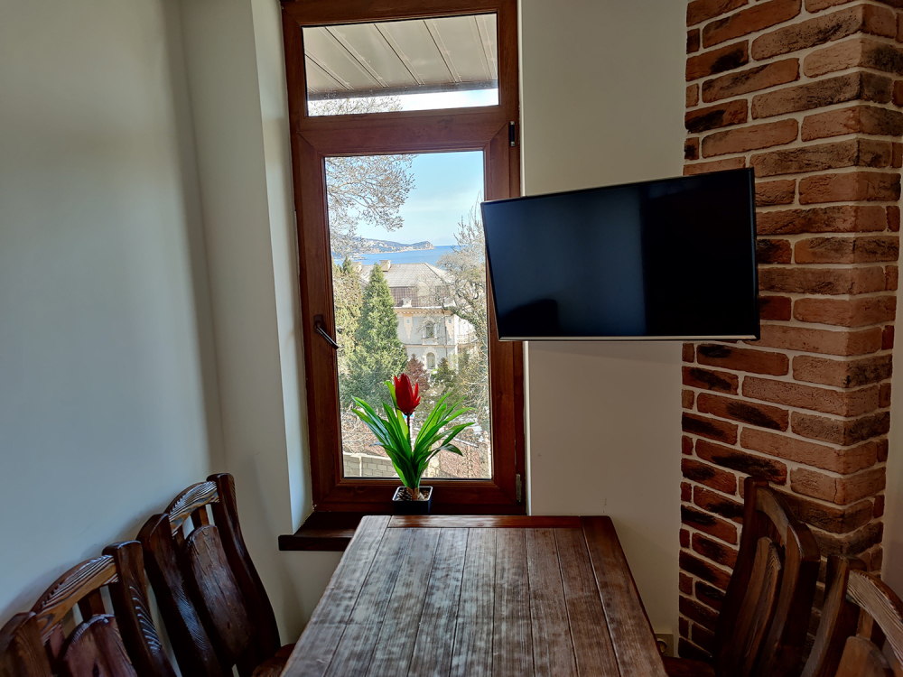 В номере 3 балкона, 2 кондиционера, 2 телевизора, есть микроволновка.