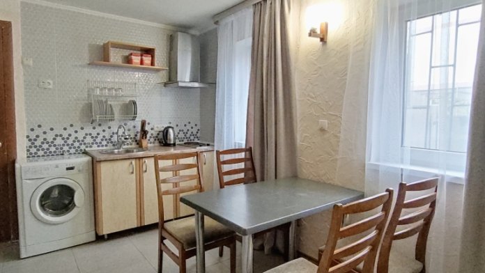 Квартира находится в живописном месте Нижней дороги поселка Гаспра. Располагается в спальном районе, первая линия жилого комплекса от моря. Все окна с видом во двор.