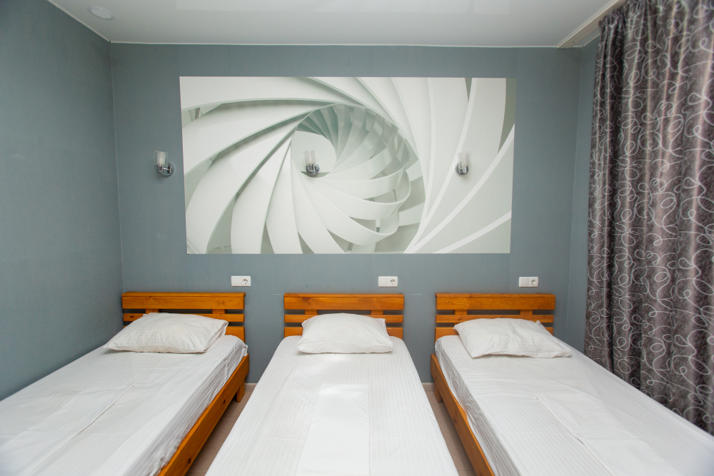 Уютный трехместный номер со всеми удобствами. В номере находятся кровати с ортопедическим матрасами и качественным постельным бельем, телевизор, холодильник, кондиционер, чайник, фен. В душевой комнате есть новая сантехника и туалетные принадлежности. Бесплатный WI-Fi.