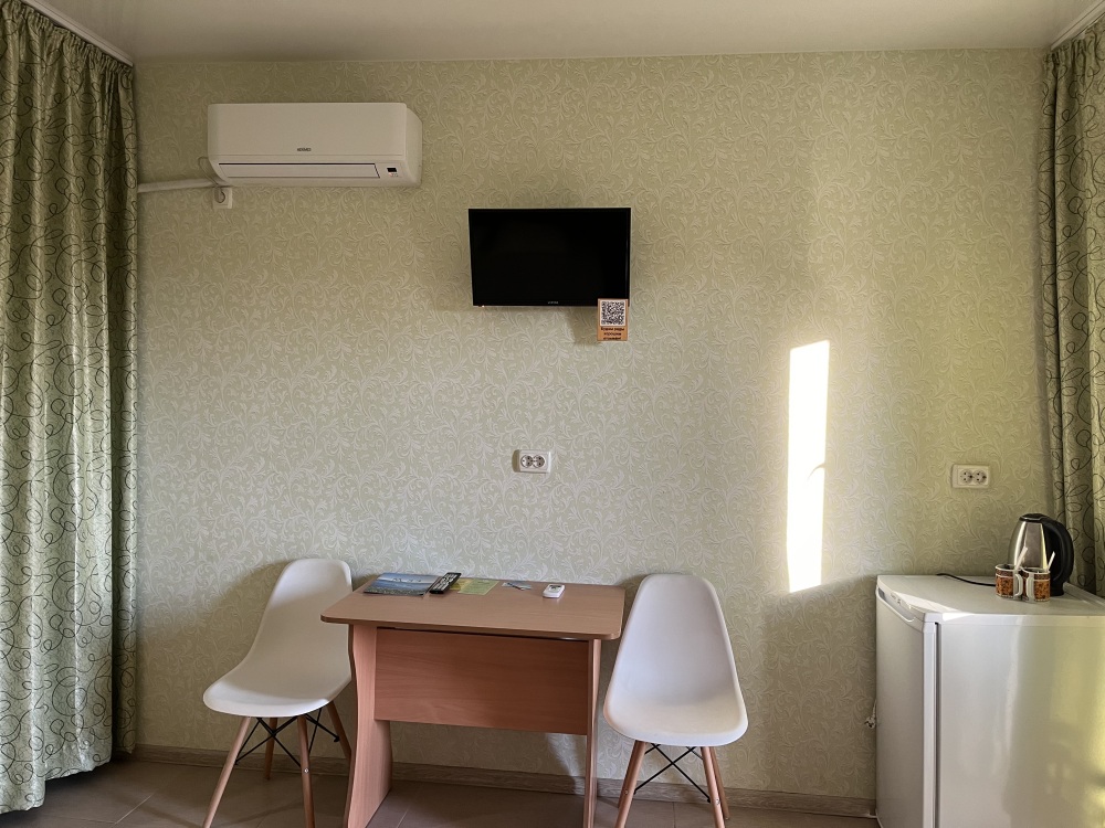 В номерах есть кровати с ортопедическим матрасами и качественным постельным бельем, телевизор, холодильник, кондиционер, чайник, фен. В душевой комнате находится новая сантехника и туалетные принадлежности,полотенца. Бесплатный и бесперебойный WI-FI