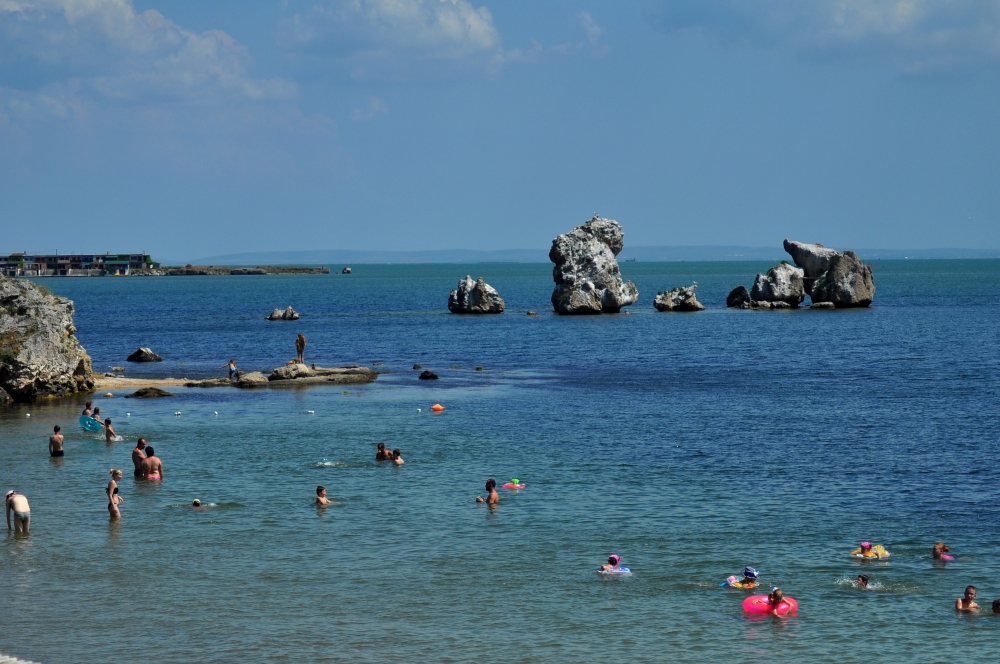 В нескольких минутах ходьбы от нашего Гостевого дома М33 находится песчаный пляж, на месте встречи Черного моря и Азовского. С пляжа открывается прекрасный вид на Крымский мост.