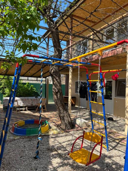 На территории есть детская площадка, качели, песочница для наших маленьких гостей, а для взрослых навес и мангал. Парковка.
