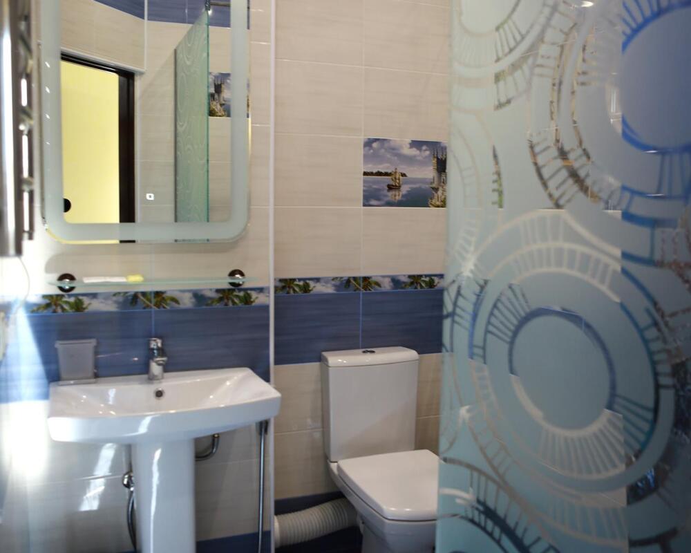 Комфортабельный, большой семейный номер 45 кв. м., с открытой террасой, с видом на море, оснащен всеми удобствами.