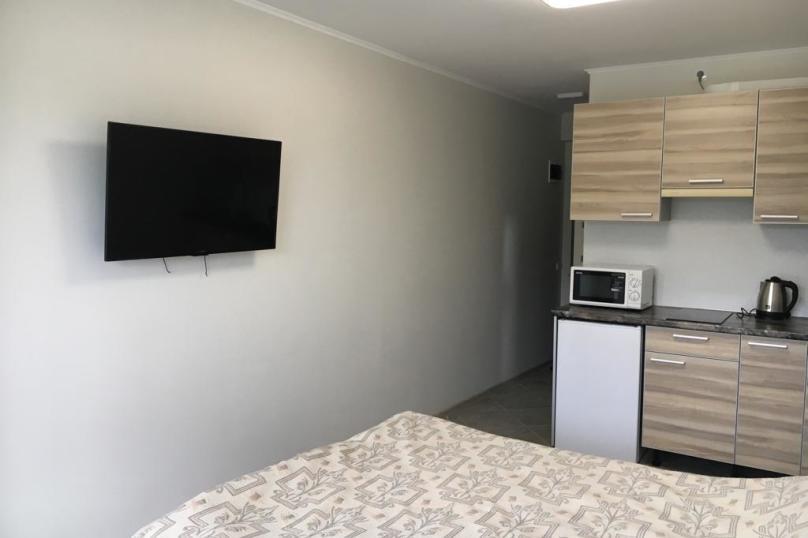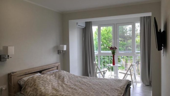 Сдаём новые студии в Феодосии, евроремонт. Двуспальная кровать (постельное белье, полотенца), кухня (холодильник, микроволновая печь, эл.плита, чайник, посуда), встроенный шкаф, утюг, гладильная доска, сушилка для белья, душевая кабина, стиральная машина, кондиционер, телевизор, wi-fi, сейф.